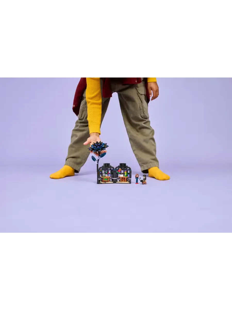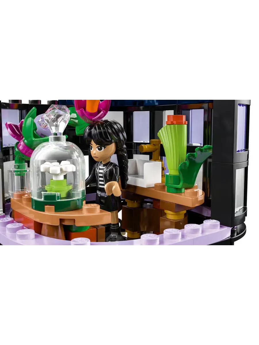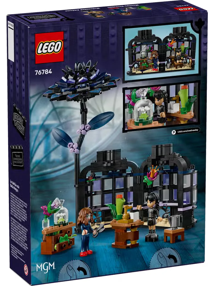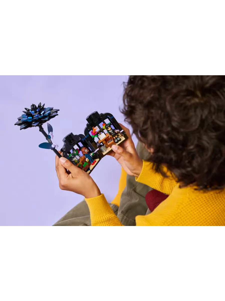 Элегантная композиция для любителей ботаники и дизайна в возрасте от 9 лет и старше — это конструктор LEGO «Цветок георгина» (76784). В этом декоре для комнаты изображено растение георгин с листьями и светло-фиолетовыми бутонами, а также ваза, напоминающая мини-оранжерею. После сборки дети могут снять цветок георгина, чтобы открыть вазу и увидеть внутри классную комнату со съёмными партами, табуретом и другими аксессуарами для рассказывания историй. В набор также входят мини-куклы Уэнсдей Аддамс и профессора Мэрилин Торнхилл для ролевых игр.