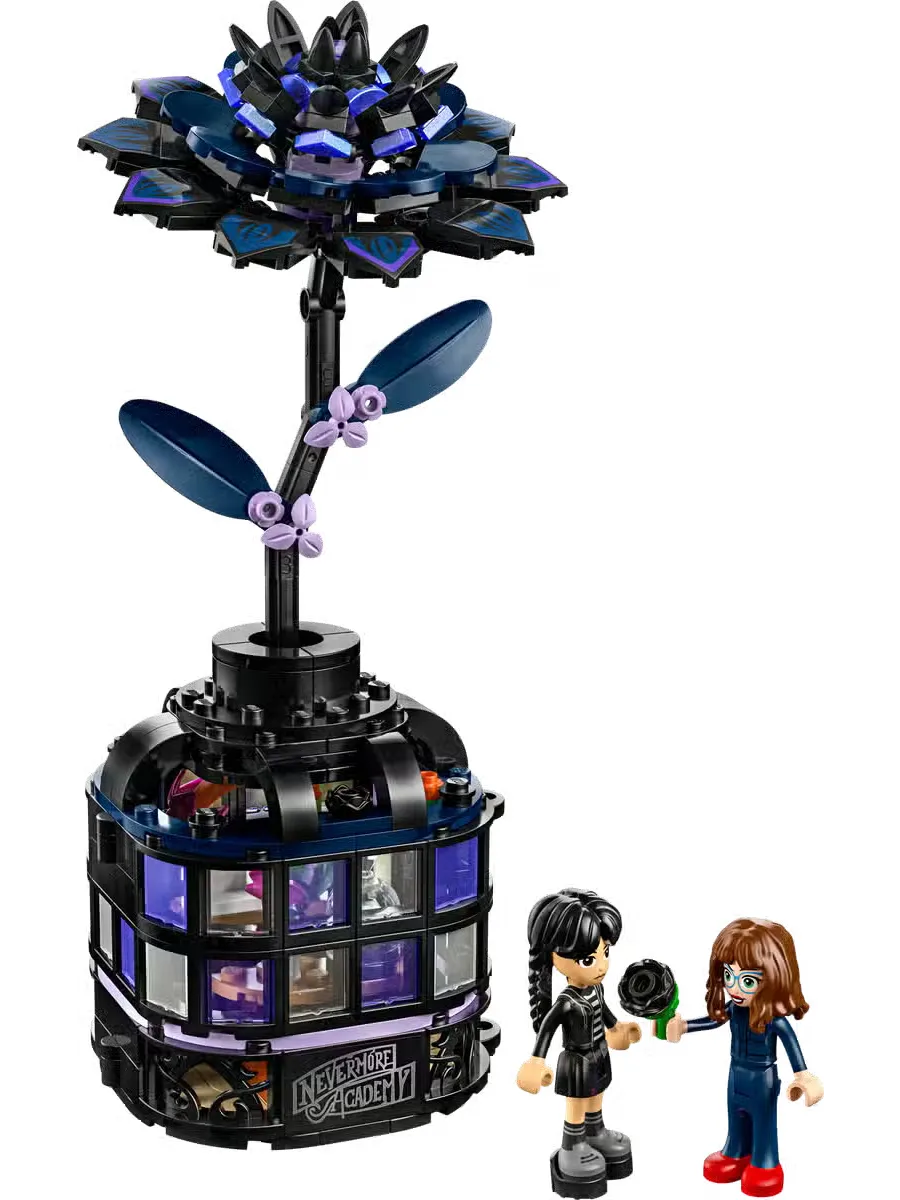 Подарочная игрушка «Среда Аддамс» на Хэллоуин — этот набор «Цветок чёрной лилии» с вазой, цветком и другими элементами понравится любителям дизайна и сборки LEGO в возрасте от 9 лет.