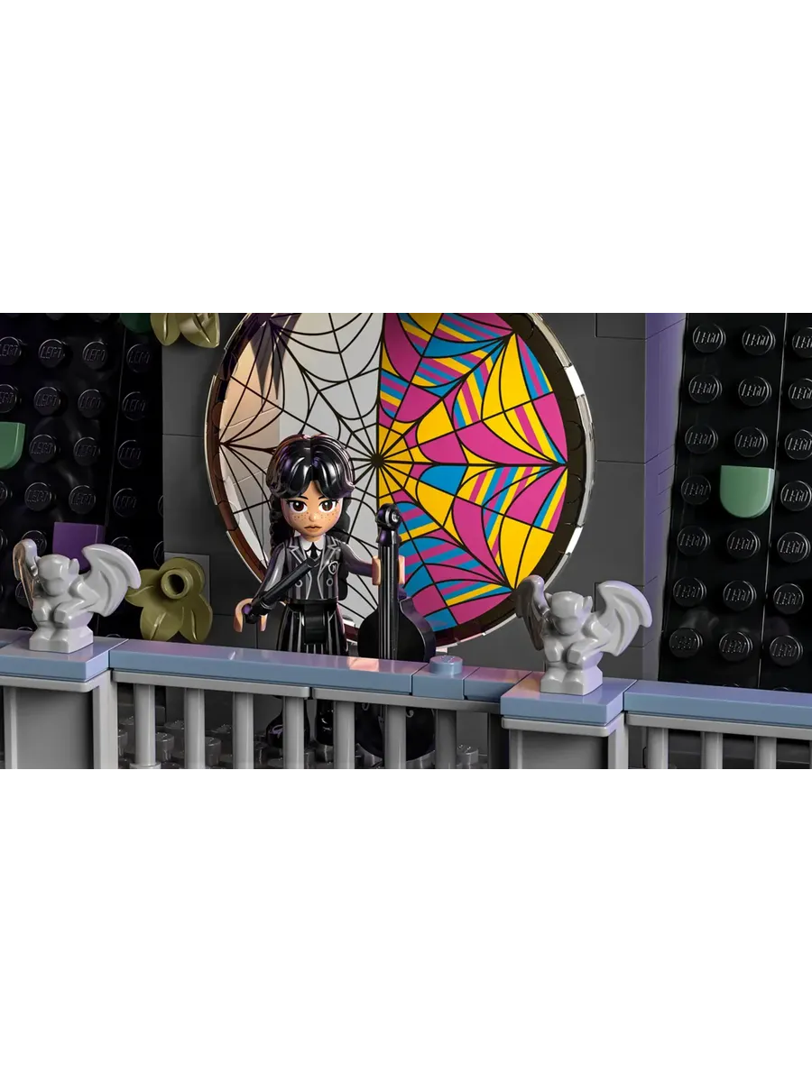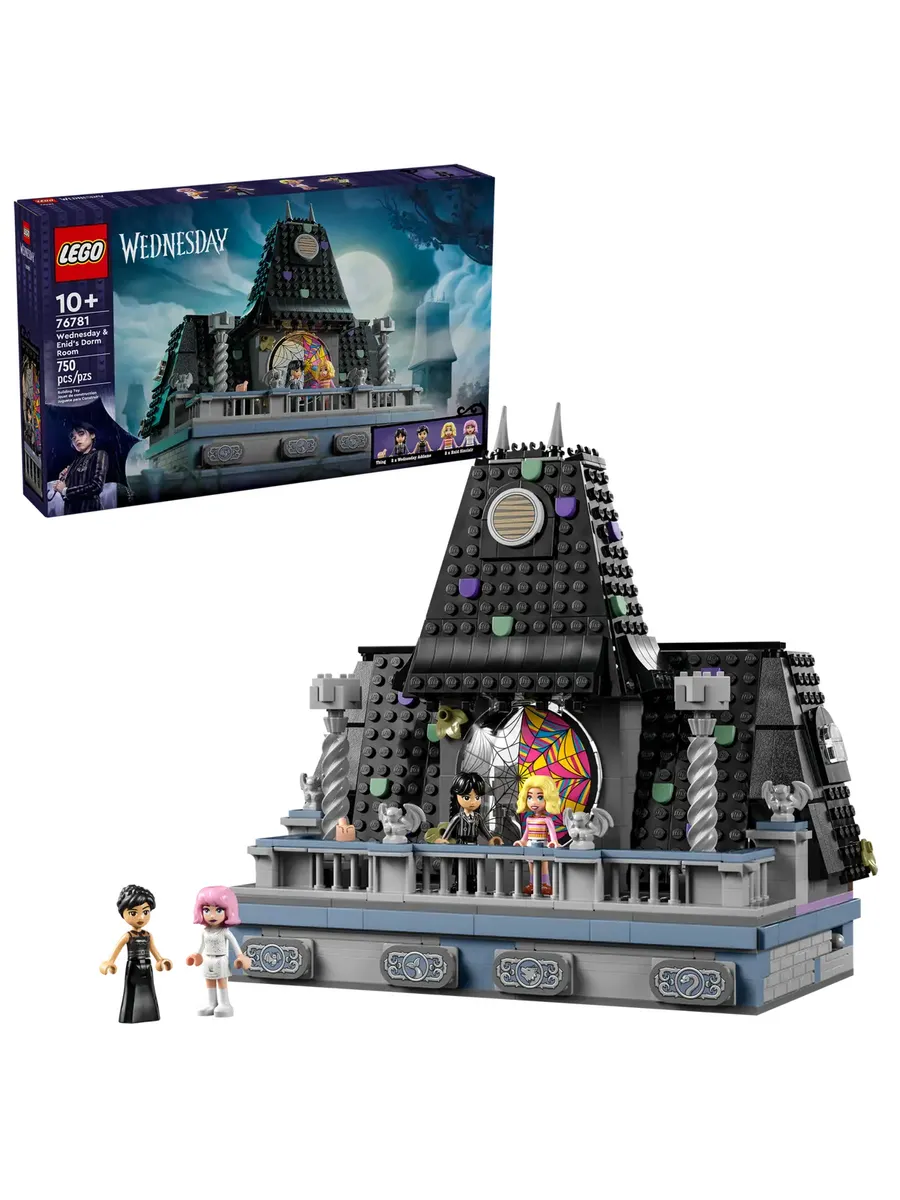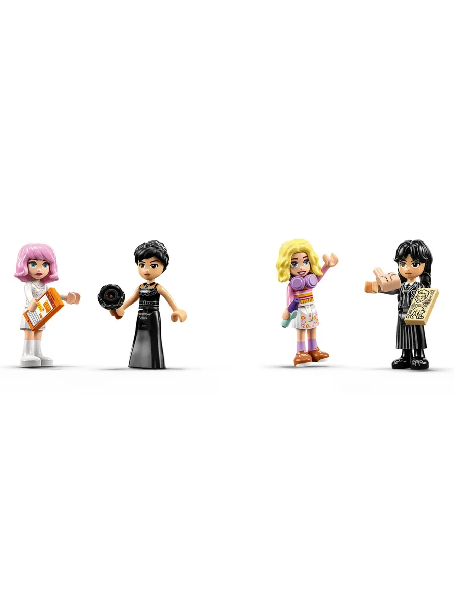 Добро пожаловать обратно в Академию Невермор с этим набором для игр в жанре «загадки и приключения» для детей и фанатов в возрасте от 10 лет. В подробный подарочный набор LEGO «Среда Аддамс» входят 4 коллекционные фигурки Уэнсдэй и Энид Минидолл, персонаж Тинг и модель комнаты в общежитии. В комнате есть виолончель, пишущая машинка, загадочная доска, балкон с горгульями, открывающееся окно, основание с кнопками для открытия потайных ящиков и многое другое. В ящиках можно хранить 2 фигурки, а также аксессуары, в том числе головной убор в виде кошачьих ушек и телефон Энид.