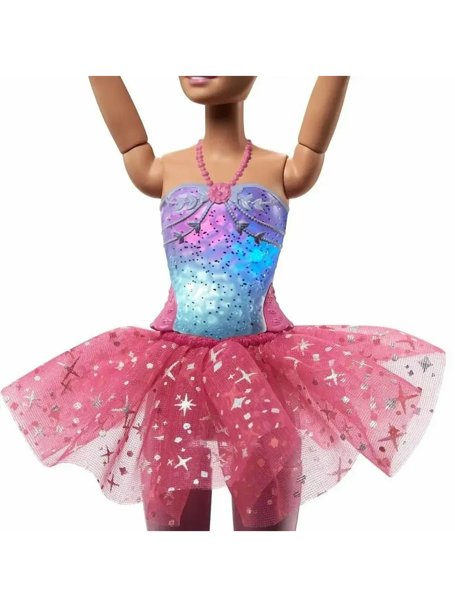 Забудьте об обычных куклах – Барби-балерина уникальна! Благодаря функции подсветки каждое ее движение становится волшебным. Нажмите кнопку на талии , и вы увидите, как ее корсет загорится красивыми цветами. Это развлечение, которое стимулирует воображение и добавляет волшебства в каждую историю.