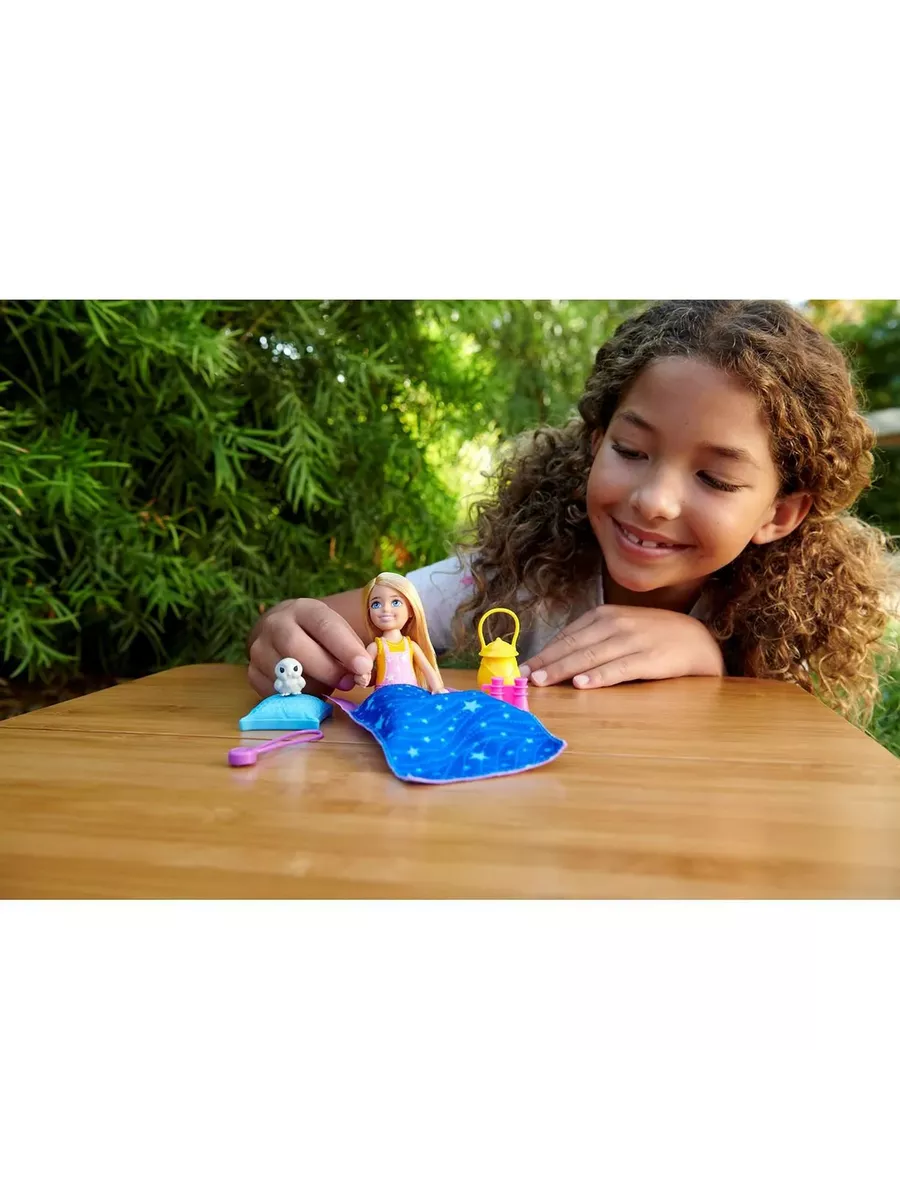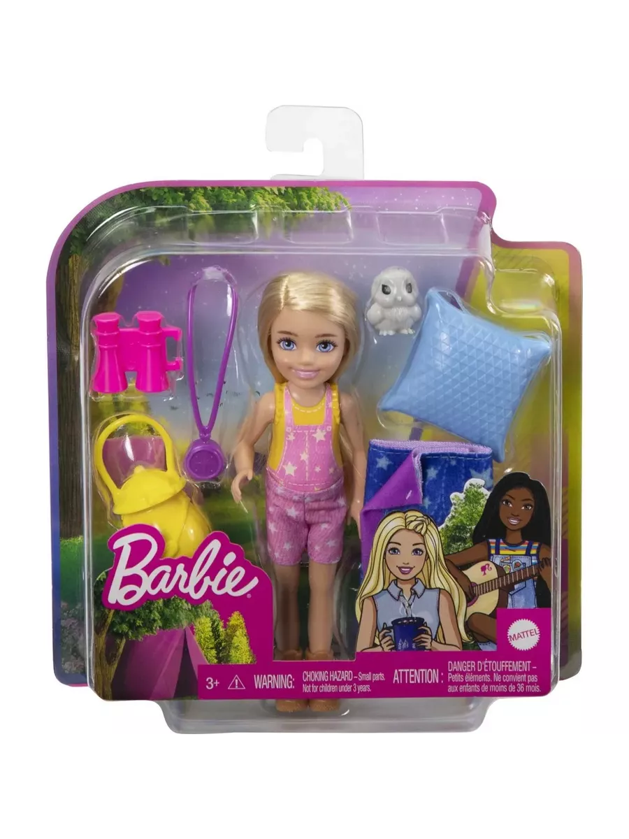 Погрузитесь в атмосферу незабываемых приключений с игровым набором Barbie. Отправляйтесь в поход вместе с Челси и ее милым другом-совенком. Вместе с куклой Челси проведите день на природе, исследуя местность используя компас и бинокль для осмотра достопримечательностей. После насыщенного приключениями дня устройте Челси на ночлег в спальном мешке под звездным небом, а совенка положите на подушку.