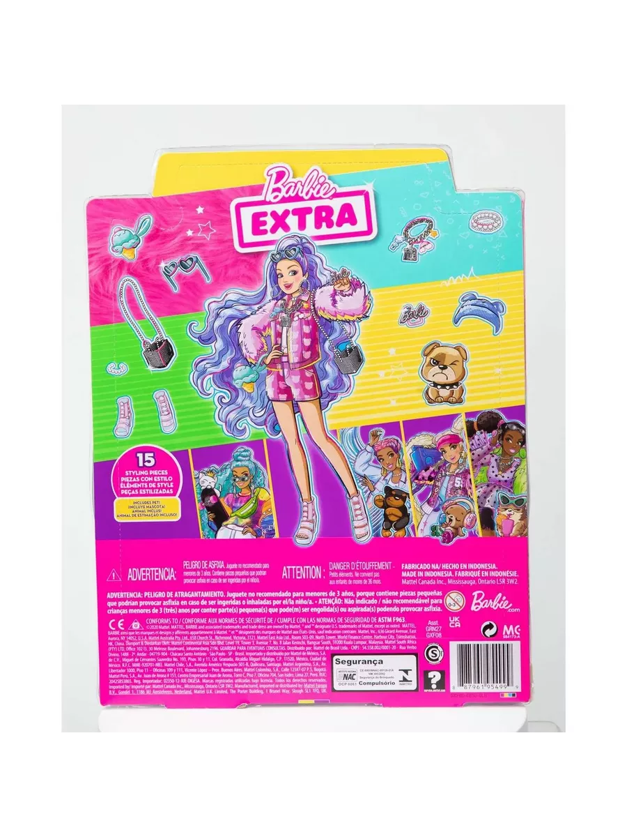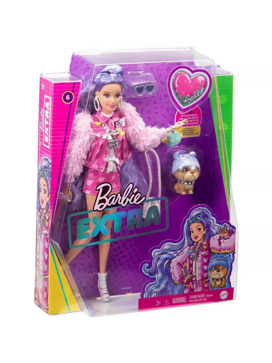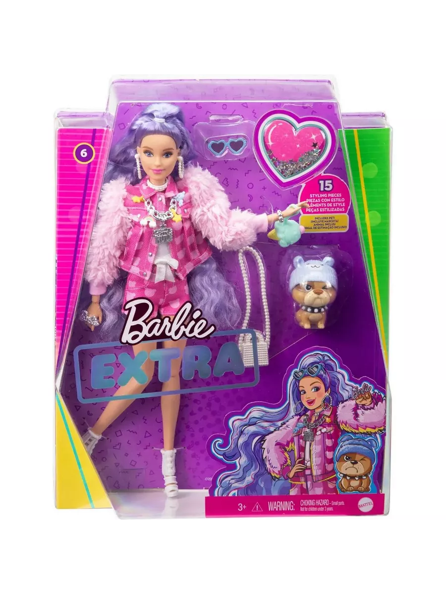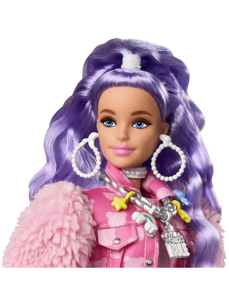 Куклы Барби “Экстра” – воплощение смелых образов в сочетании с яркими цветами! Эта кукла с сиреневыми волосами отличается уникальным стилем, который позволяет ей всегда быть на высоте. Розовый наряд с короткими шортами, кокетливая прическа и маленький щенок, полный обаяния и харизмы, сделают Барби звездой любой вечеринки. Блестки, море аксессуаров и необычные волосы – каждая деталь создает особую атмосферу везде, где бы вы ни оказались вместе с любимой куклой!