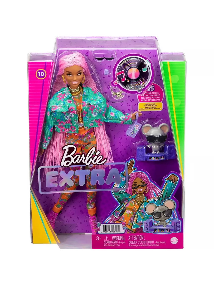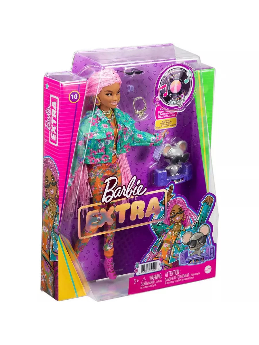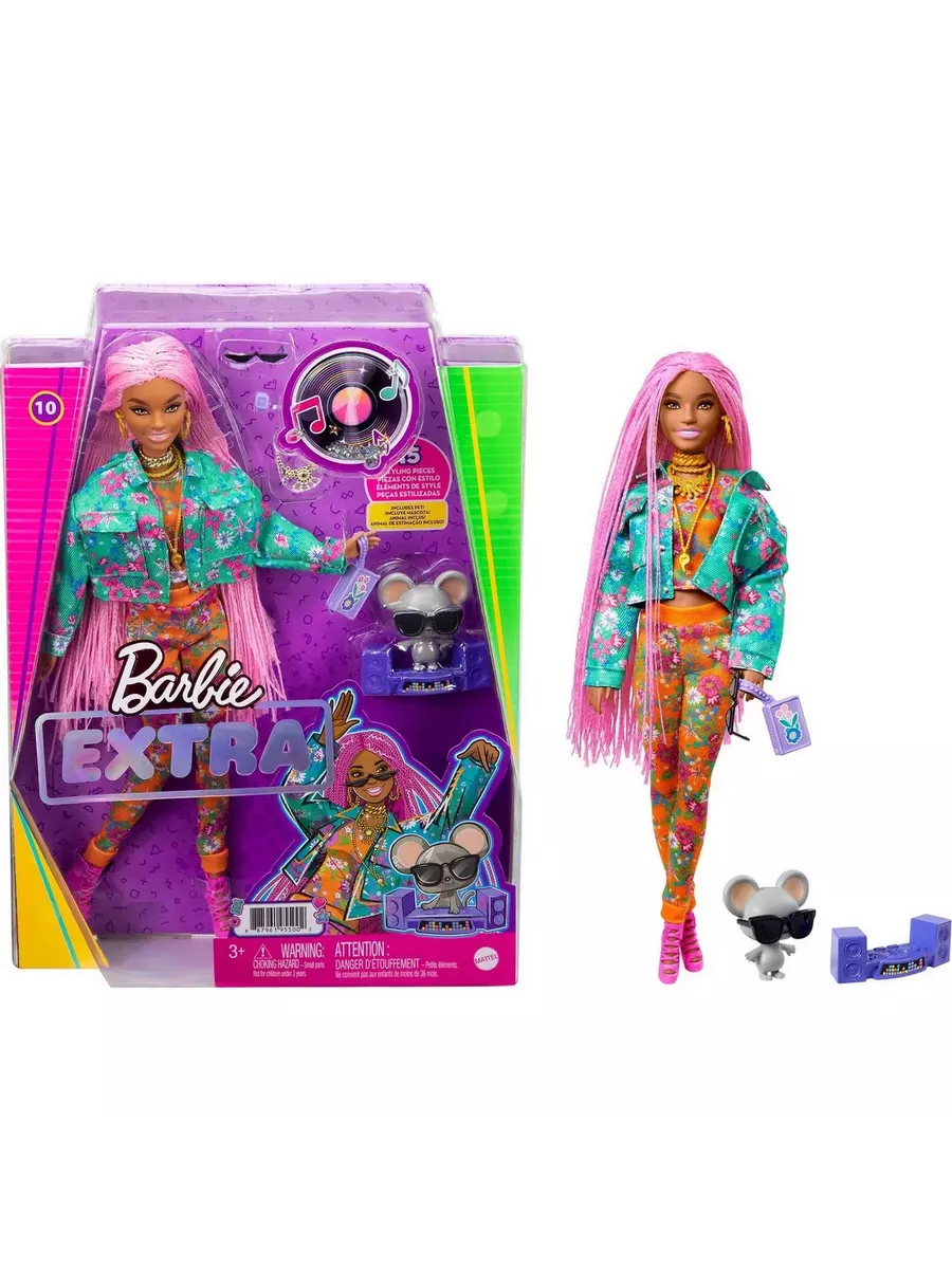 Барби Extra поставляется с 15 модными элементами, которые объединяют в себе наряды, украшения, питомца и аксессуары для него