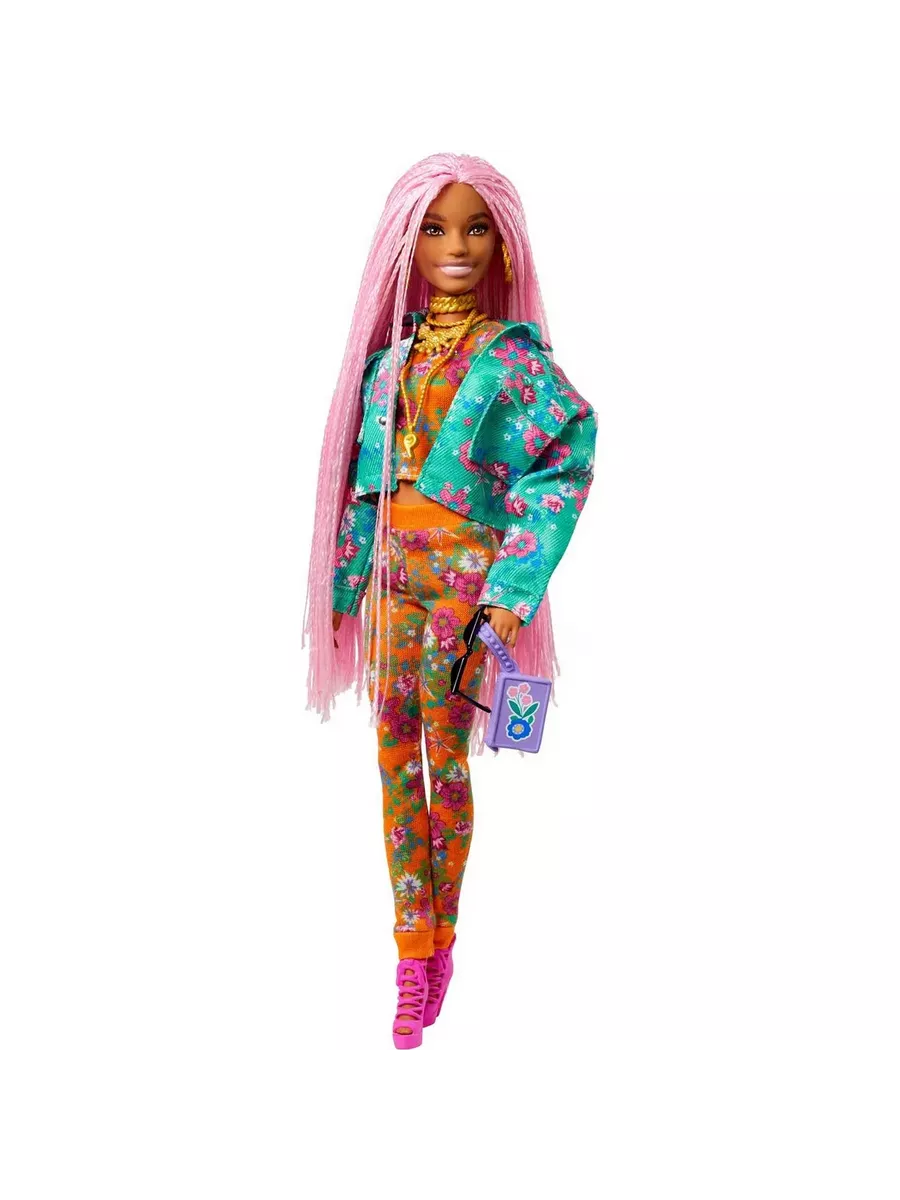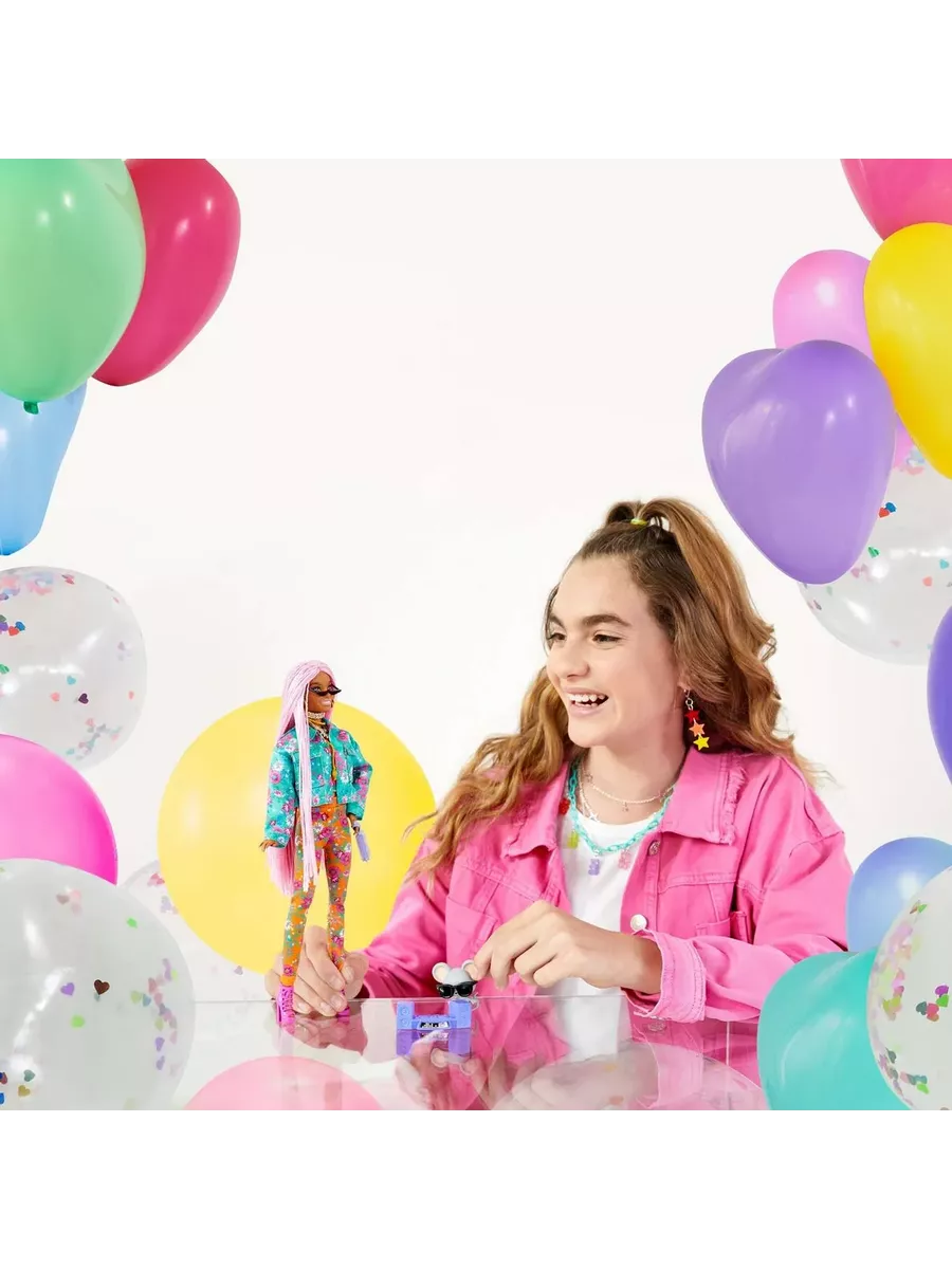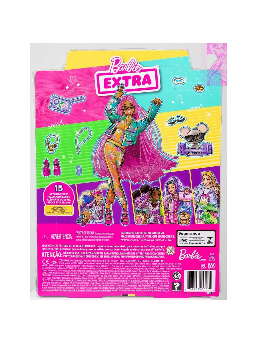 Барби Extra поставляется с 15 модными элементами, которые объединяют в себе наряды, украшения, питомца и аксессуары для него