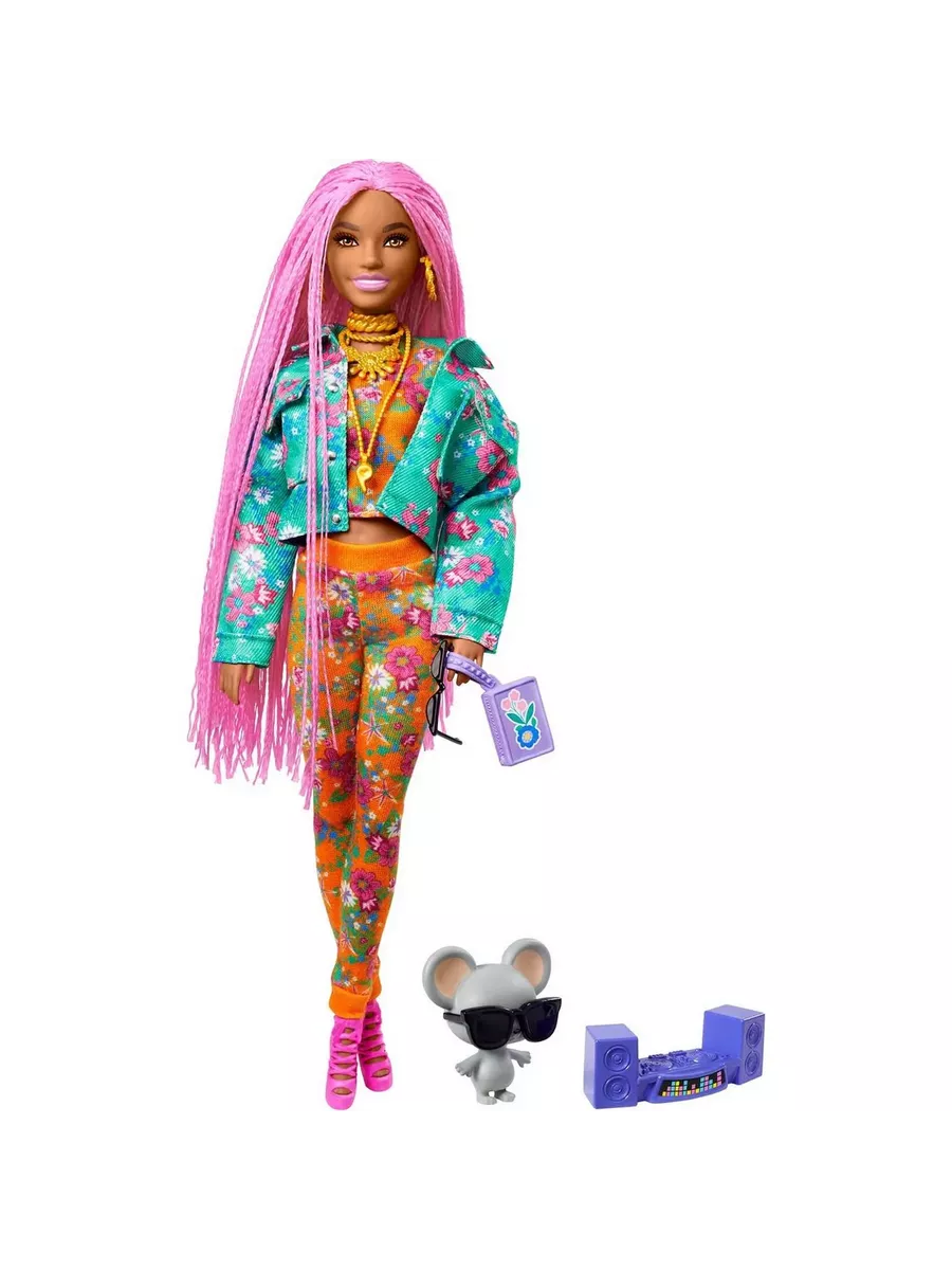 Куклы Барби Экстра воплощают смелые модные образы в сочетании с яркими цветами! Каждая из кукол представлена в собственном неповторимом и задорном стиле. Куклы поставляются вместе с питомцами, такими же разными, как их хозяйки, и абсолютно очаровательными. Барби с эффектными розовыми косичками может принимать реалистичные позы, и вместе с мышонком-диджеем они создают особую атмосферу! Цвета и дизайн могут отличаться от изображений. Кукла не может стоять без опоры. Каждая кукла продается отдельно.