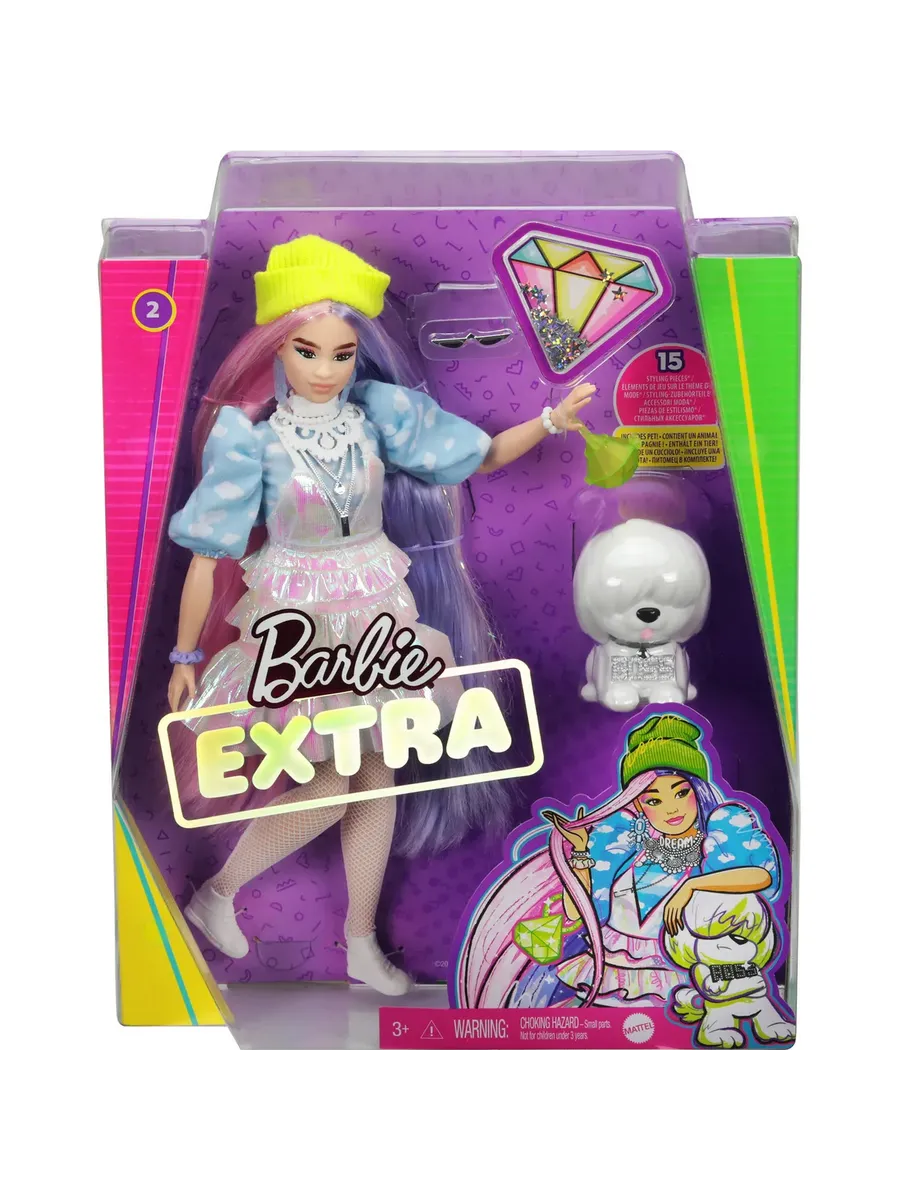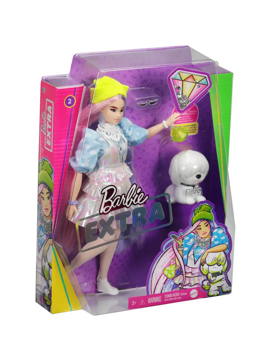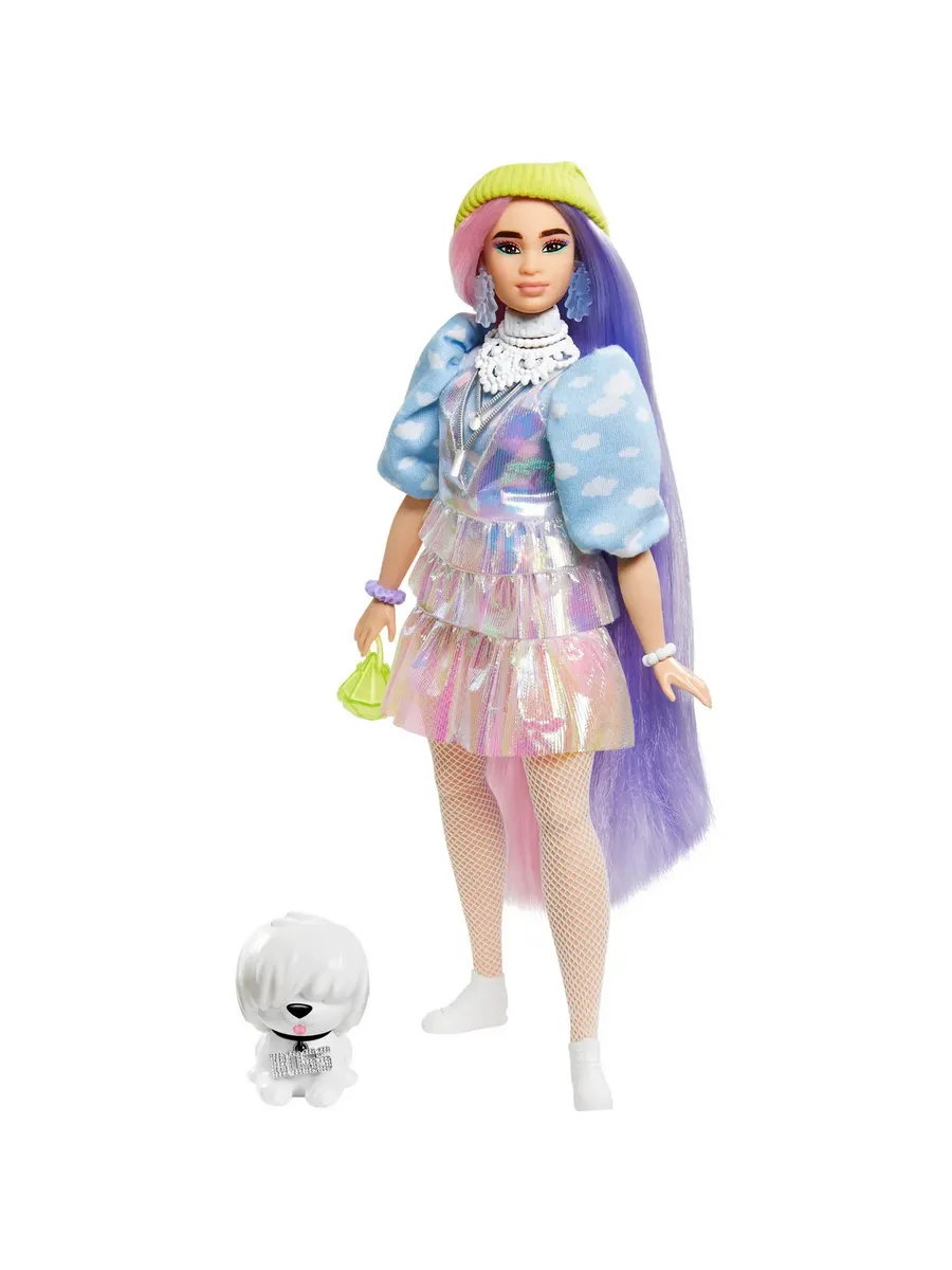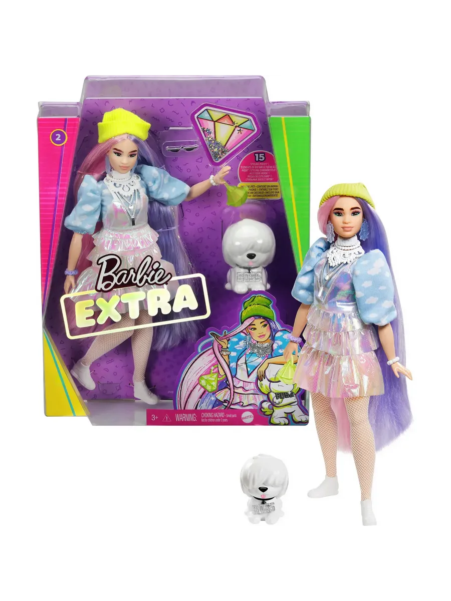 Куклы Барби Экстра - воплощение смелых модных образов в сочетании с яркими цветами! У Барби в шапочке, как и у ее очаровательного питомца, неповторимый и необычный стиль! Куклы из серии “Барби Экстра” способствуют развитию творческого самовыражения детей через увлекательные игры с яркими модными аксессуарами. Блестки, мармеладные мишки, смайлики и необычные волосы - все эти детали привносят в игру особую атмосферу, куда бы вы не пошли. Цвета и дизайн могут отличаться от изображений. Кукла не может стоять без опоры.