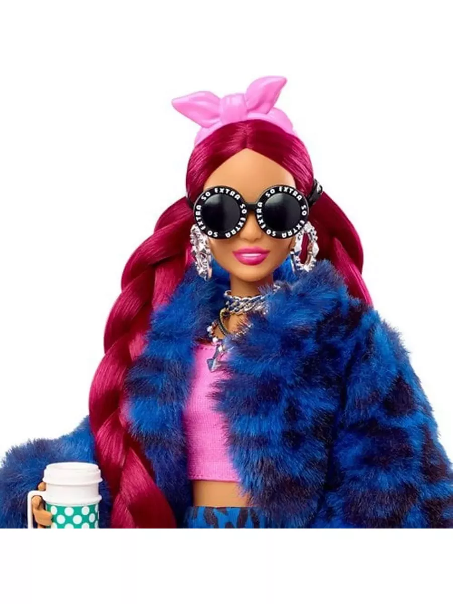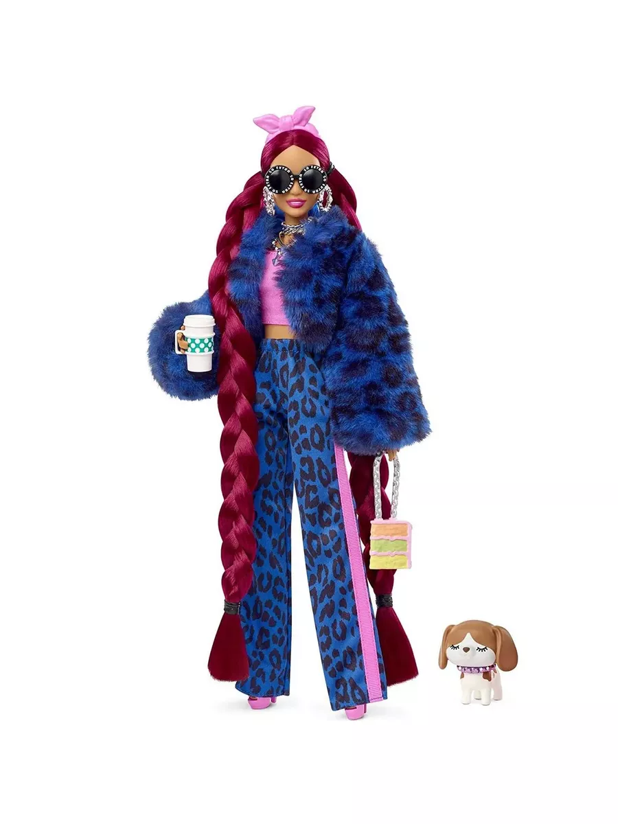 Знакомьтесь с красавицей в укороченной шубке из искусственного меха с леопардовым принтом и стильных брюках в тон! Хищный принт отлично сочетается с классическим розовым цветом в дуэте с топом, босоножками на высоком каблуке и банданой на голове. Многочисленные украшения, а также очки со стразами придают образу шикарный стиль! Текстурированная яркая сумочка в форме кусочка тортика, невероятно подходит образу . У куклы невероятно роскошные длинные волосы бордового цвета и заплетены в косы. Сколько причесок можно сделать и сколько сюжетов игры придумать! Питомец также о-о-очень экстра модный! У него есть собственная чашка с кофе! У куклы 11 точек артикуляции. Не может стоять самостоятельно. Цвета и внешний вид могут отличаться.
