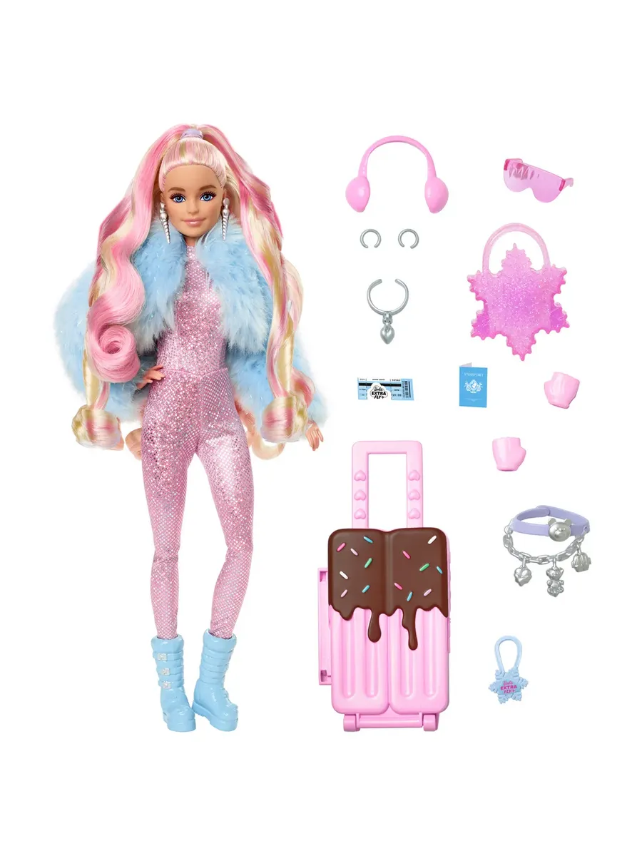 Каждая кукла поставляется с аксессуарами и элементами стиля в стиле путешествий для важного прикосновения. Кукла Барби готова кататься по склонам в своем зимнем наряде! Эта кукла с подвижным телом идеально подходит для снежных приключений. Она демонстрирует свой уверенный зимний стиль в синей шубе и блестящем розовом лыжном костюме, гармонирующем с ее длинными розовыми волосами. Каждая деталь имеет значение! Кукла Барби поставляется с 15 аксессуарами, в том числе розовыми наушниками, перчатками без пальцев, зимними ботинками и лыжными очками, которые вдохновляют детей выражать свой собственный стиль и весело проводить время. Основные аксессуары для путешествий улучшают рассказывание историй. Эта кукла в зимнем наряде поставляется с чемоданом, вдохновленным льдом, багажной биркой в виде снежинки, паспортом, билетом на самолет и сумкой со снежинкой. Куклы Barbie Extra Fly с таким количеством забавных стилей и элементов для путешествий станут отличным подарком для детей, которые любят моду и путешествия.