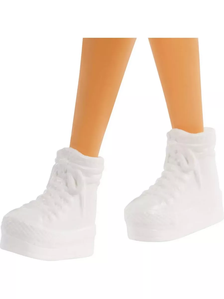 Линейка кукол Барби “Игра с модой” создана, чтобы отобразить мир, который девочки видят сегодня. Куклы серии отличаются индивидуальным телосложением, цветом глаз, волос и кожи, что открывает возможности для бесконечных вариаций сюжетно-ролевых игр. Эта кукла Барби представлена в очаровательном платье-футболке. Завершают стильный образ высокие белые кроссовки. Соберите коллекцию кукол Барби из серии “Игра с модой”, и разыграйте с ними собственные увлекательные истории. Кукла не может стоять без опоры. Обувь на плоской подошве подходит для кукол с подвижным голеностопом или плоской стопой. Цвета и дизайн могут отличаться от изображений.