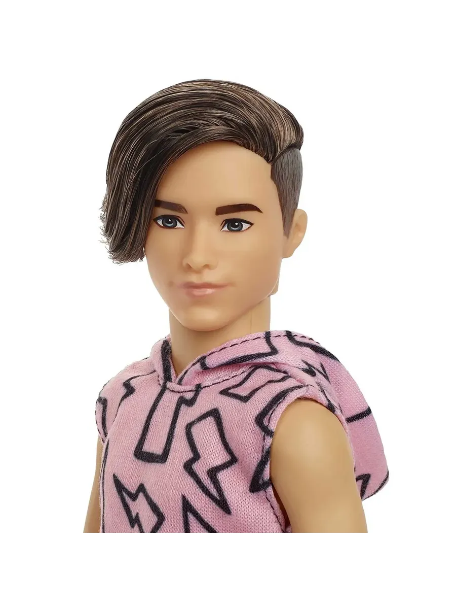 В серии “Игра с модой” вы найдете кукол Кенов с самыми разными оттенками кожи и типами фигуры. Каждая кукла имеет уникальную внешность и одета в стильный наряд, который соответствует последним модным тенденциям. Кукла Кен из серии “Игра с модой” выглядят стильно и современно благодаря своей модной внешности и уникальному стилю. Кен одет в футболку с капюшоном и черные джоггеры, классная пара обуви дополняют образ.