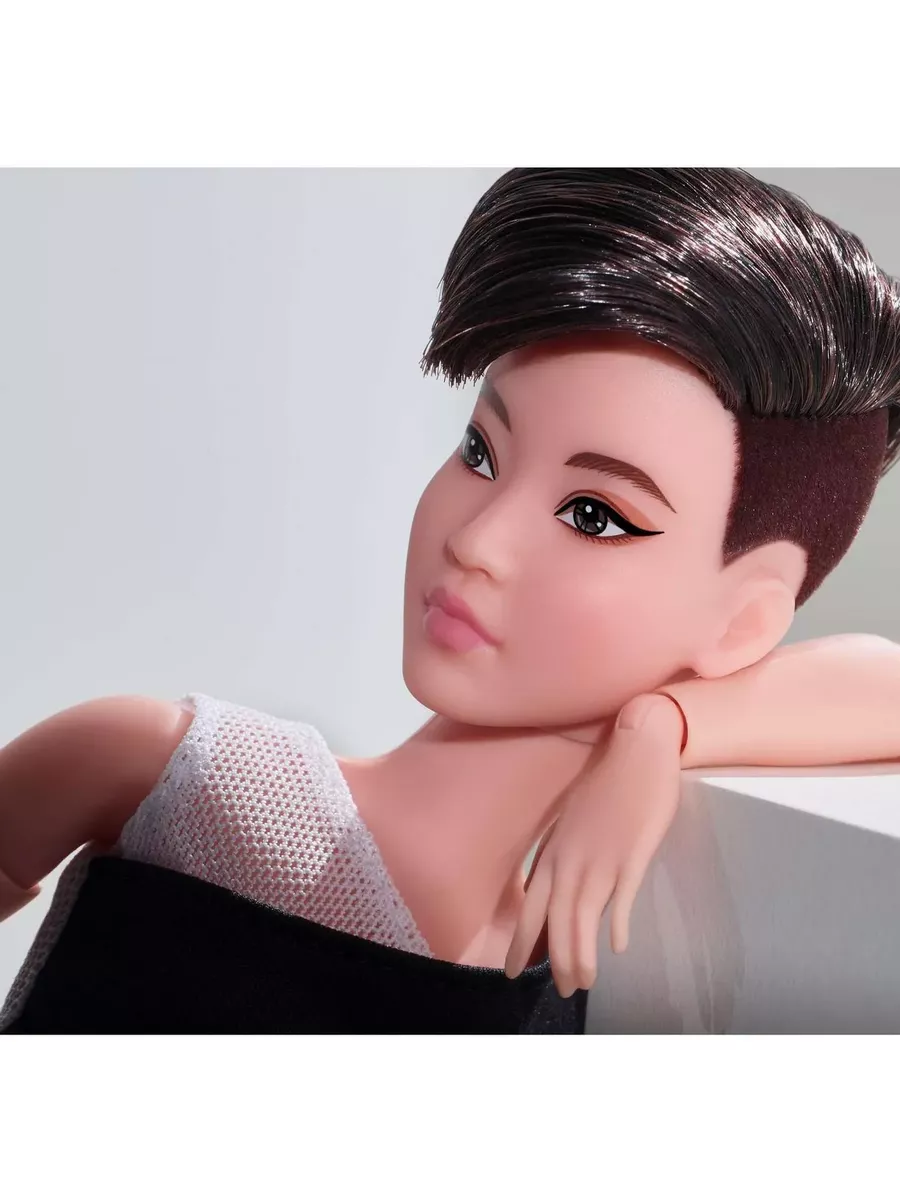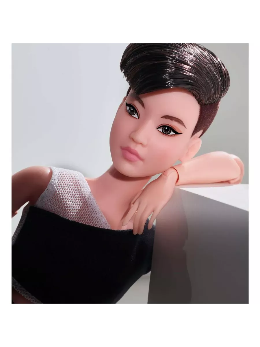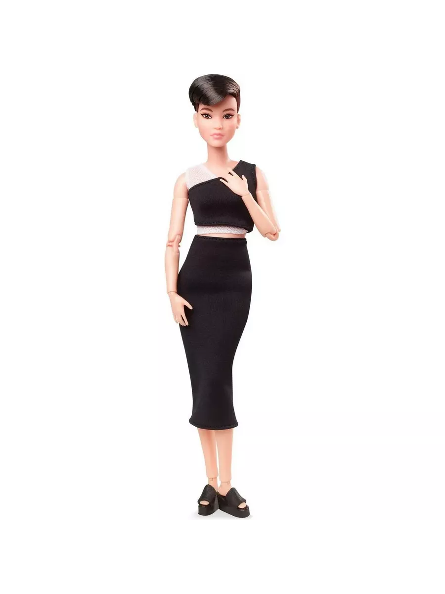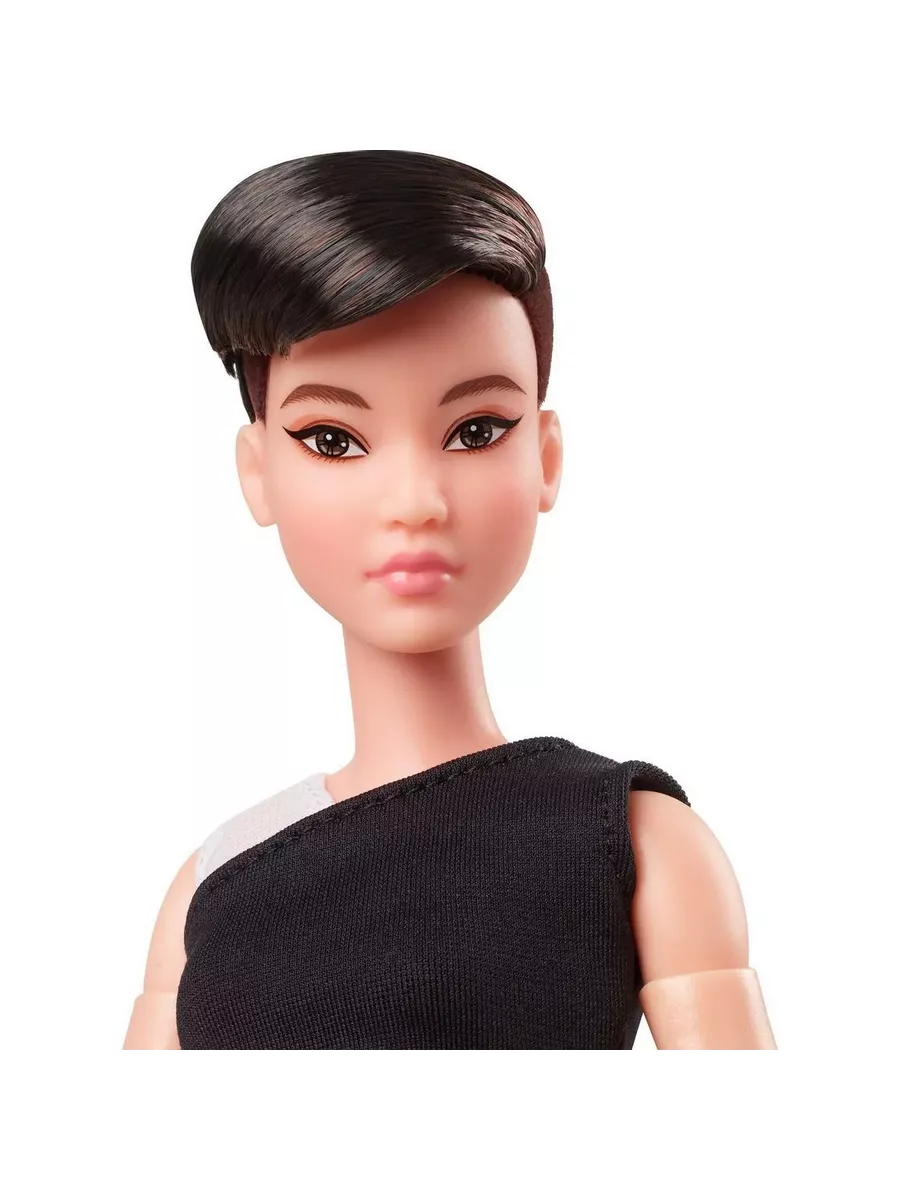 Куклы Барби в модной одежде с яркими деталями вдохновят юного стилиста! Придавайте этим подвижным куклам различные позы и разыгрывайте с ними модную фотосессию. У этой куклы Барби уникальные черты лица и модная стрижка пикси с выбритыми по бокам волосами. Наряд куклы представляет собой черные топ и юбку, а стильные шлепанцы на платформе завершают ее образ. Модные и подвижные куклы Барби с индивидуальным стилем станут идеальным подарком для поклонников моды и коллекционеров Barbie. Откройте для себя их все, чтобы создать свою стильную команду. Каждая кукла продается отдельно. В упаковке представлена подставка для куклы и сертификат подлинности. Кукла не может стоять без опоры. Цвета и элементы декора могут отличаться от изображений.