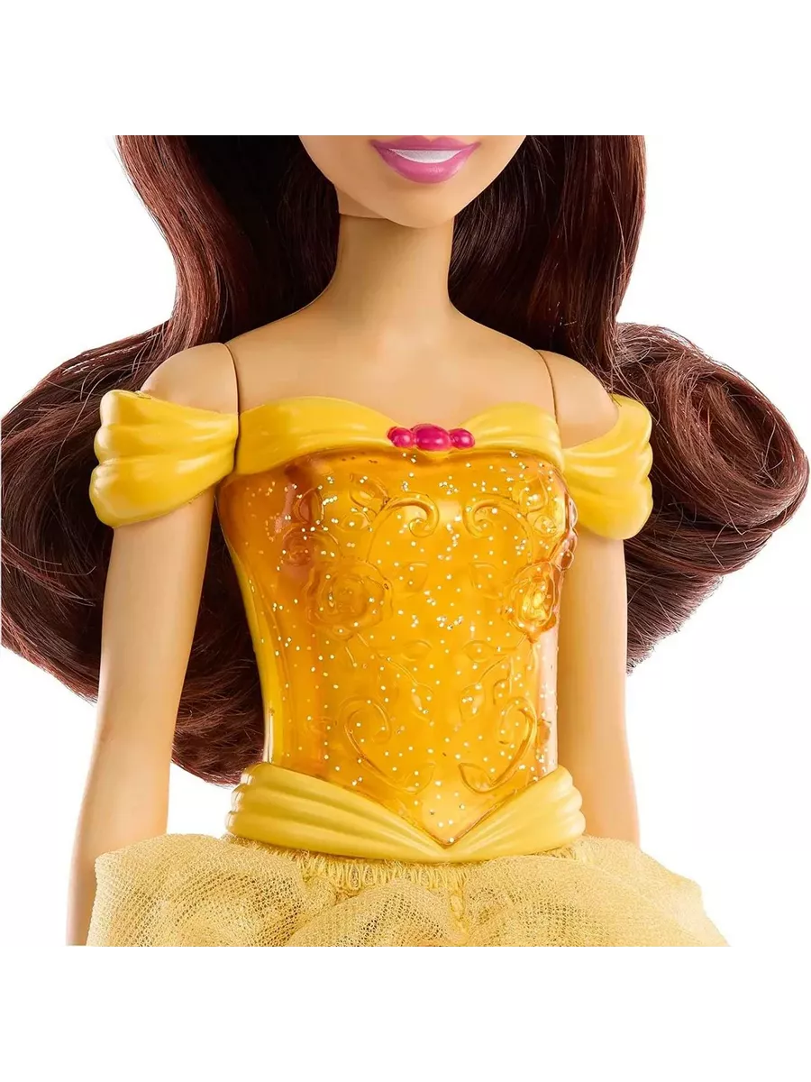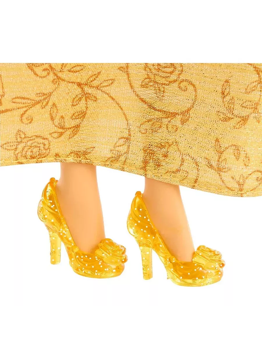 Наряд куклы включает в себя блестящий топ и съемную юбку с уникальным узором, рассказывающим историю Белль.