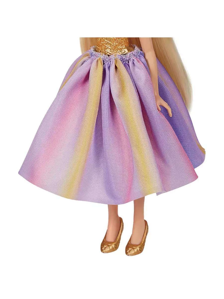 Переоденьте принцессу Рапунцель из простого платья в пышный бальный наряд! В комплекте с этой модной куклой вы найдете две юбки - сверкающую фиолетовую, и роскошную цвета омбре, переливающуюся множеством оттенков. Уложите длинные светлые волосы Рапунцель в изящную прическу, дополните образ тиарой и представьте, как вы вместе с ней отправляетесь на грандиозный бал или танцевальный вечер!