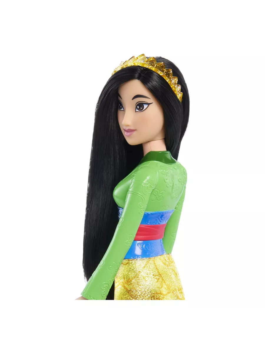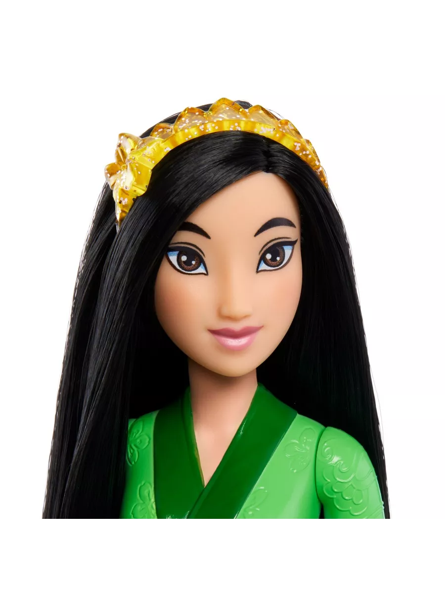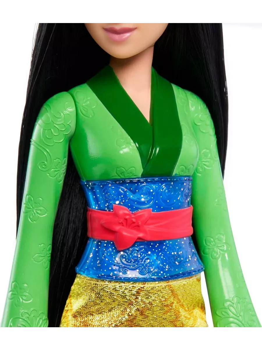 Кукла принцесса Мулан с прямыми темными волосами, вдохновленная персонажем любимого диснеевского мультфильма, готова к приключениям!