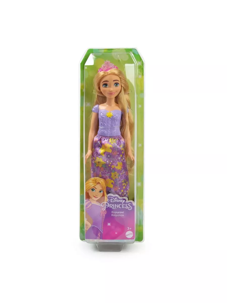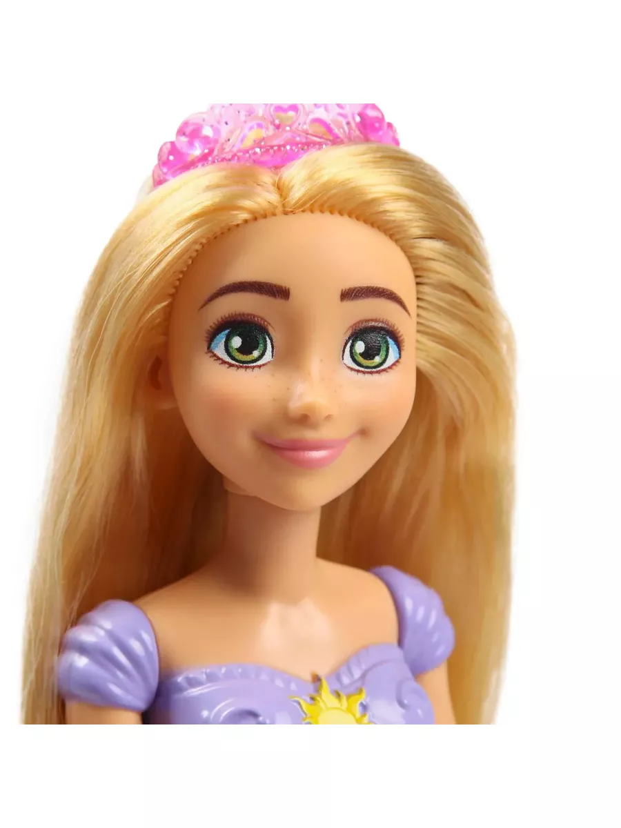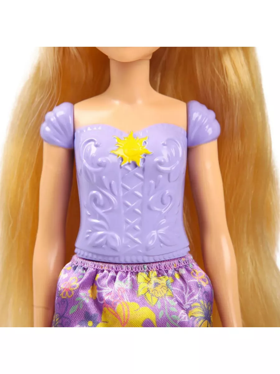Кукла одета в одежду из фильма, включая съемную обувь и тиару. Ее наряд включает в себя блестящий топ и съемную юбку с уникальным для Рапунцель сюжетным рисунком. У этой куклы-принцессы Диснея длинные волосы для веселой укладки и расчесывания. Станет идеальным подарком для детей, которые смогут разыграть свои любимые моменты из фильмов или придумать собственные приключения.