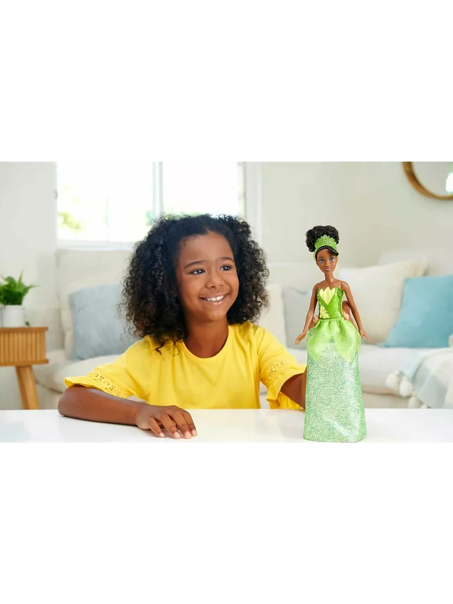 Познакомьтесь с куклой принцесса Диснея Тиана, вдохновленной амбициозной и решительной героиней диснеевского мультфильма "Принцесса и лягушка". Эта модная кукла представлена в сверкающем наряде и аксессуарах, включая обувь и тиару. В своем фирменном образе из фильма кукла принцесса Диснея Тиана готова к любым приключениям!