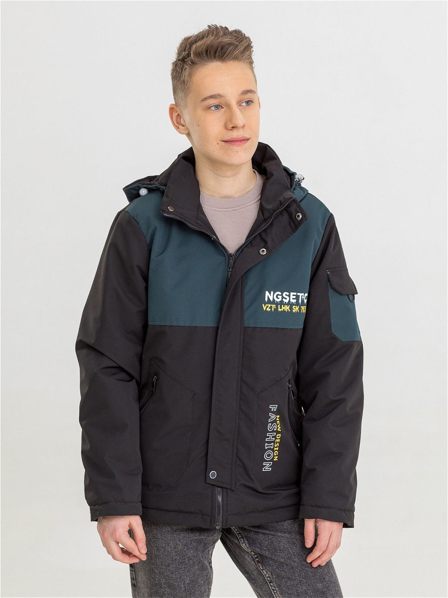 Куртка прямого силуэта, выполнена из плотной матовой ткани с водоотталкивающей пропиткой. Центральная застежка на закрытую тесьму-молнию с ветрозащитной планкой на кнопках. Рукав втачной с внутренними трикотажными манжетами. Воротник-стойка, переходящий в капюшон. Капюшон съемный на молнии, с утяжкой по объему. Два прорезных глубоких боковых кармана на молнии и накладной карман с клапаном на рукаве Внутренний глубокий карман. Декоративный накат. В качестве утеплителя используется синтетический наполнитель нового поколения.