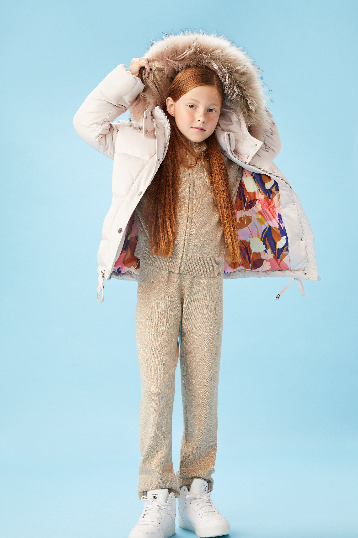 Куртка PULKA с опушкой для девочки, белый сатин FW 19-20