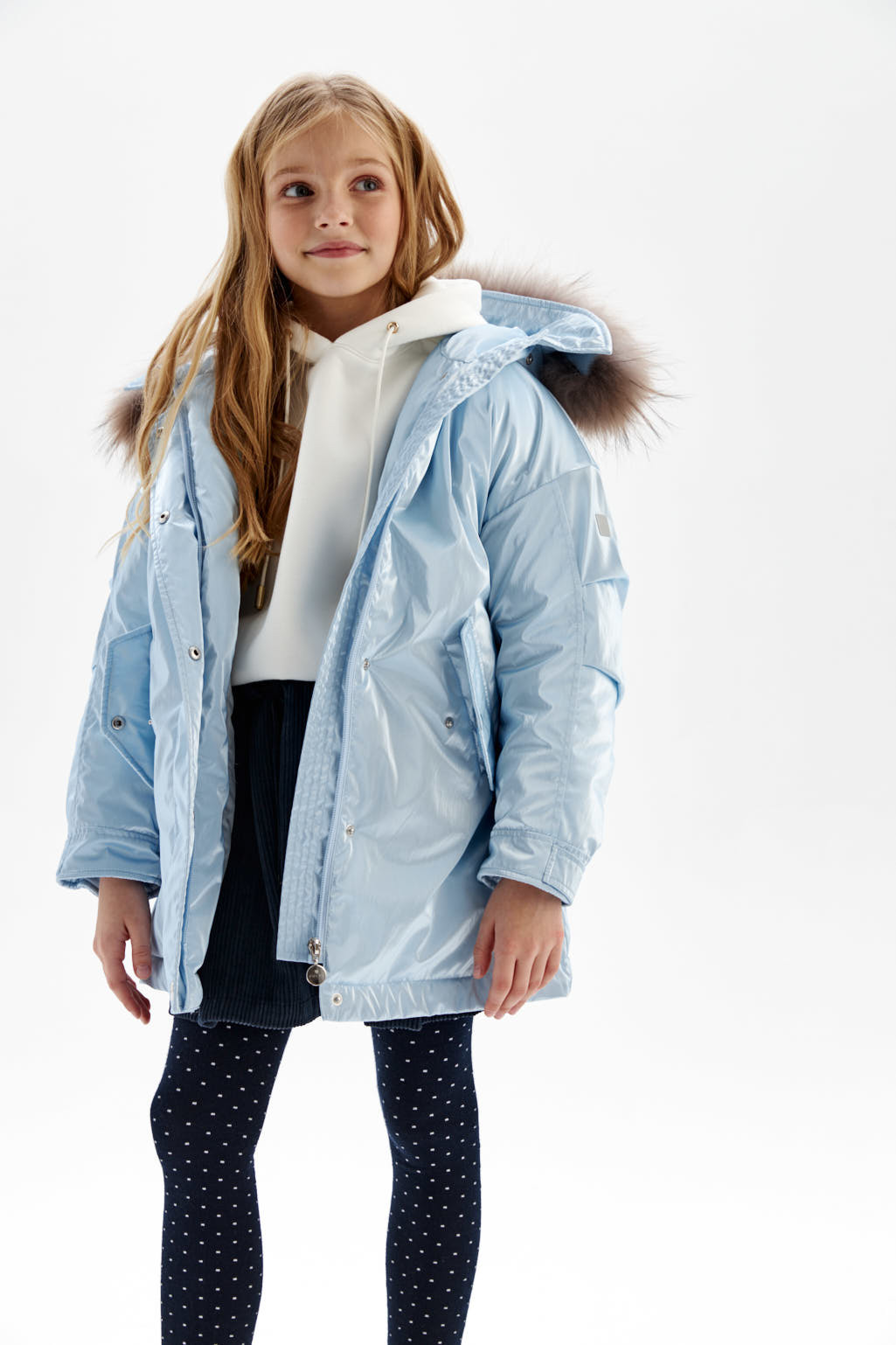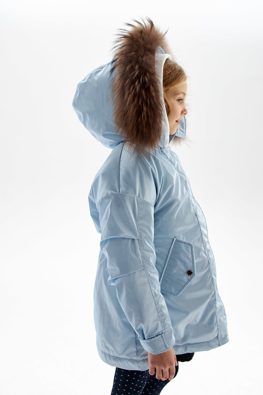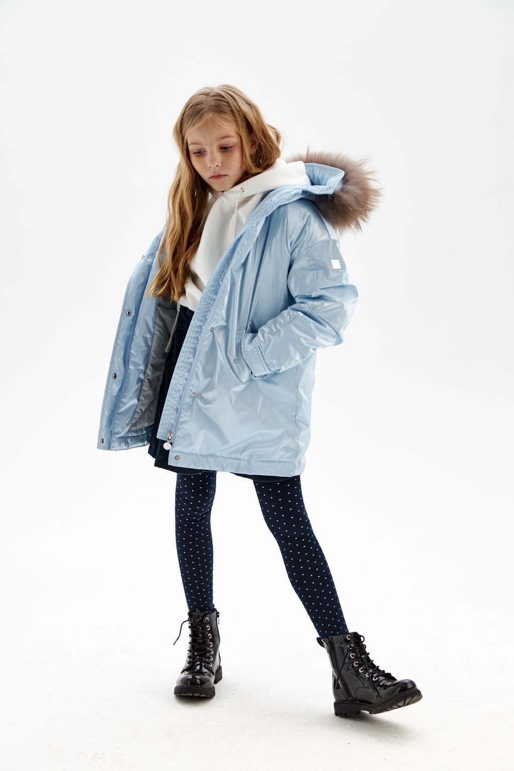 Температурный режим: до -25° C; Ткань: верх – блестящая плотная курточная ткань с водоотталкивающей и водонепроницаемой пропитками. Подкладка – поливискозная ткань в тон верха; Наполнитель 320г/м²: био-пух; Съемная опушка из меха енота; Светоотражающий шеврон; Мягкая резинка по талии; Эластичная тесьма по талии спинки; Утяжки по низу изделия и на лицевом вырезе капюшона; Низ рукавов с внутренней ветрозащитной манжетой; Две ветрозащитные планки; Подклад карманов - теплый флис;