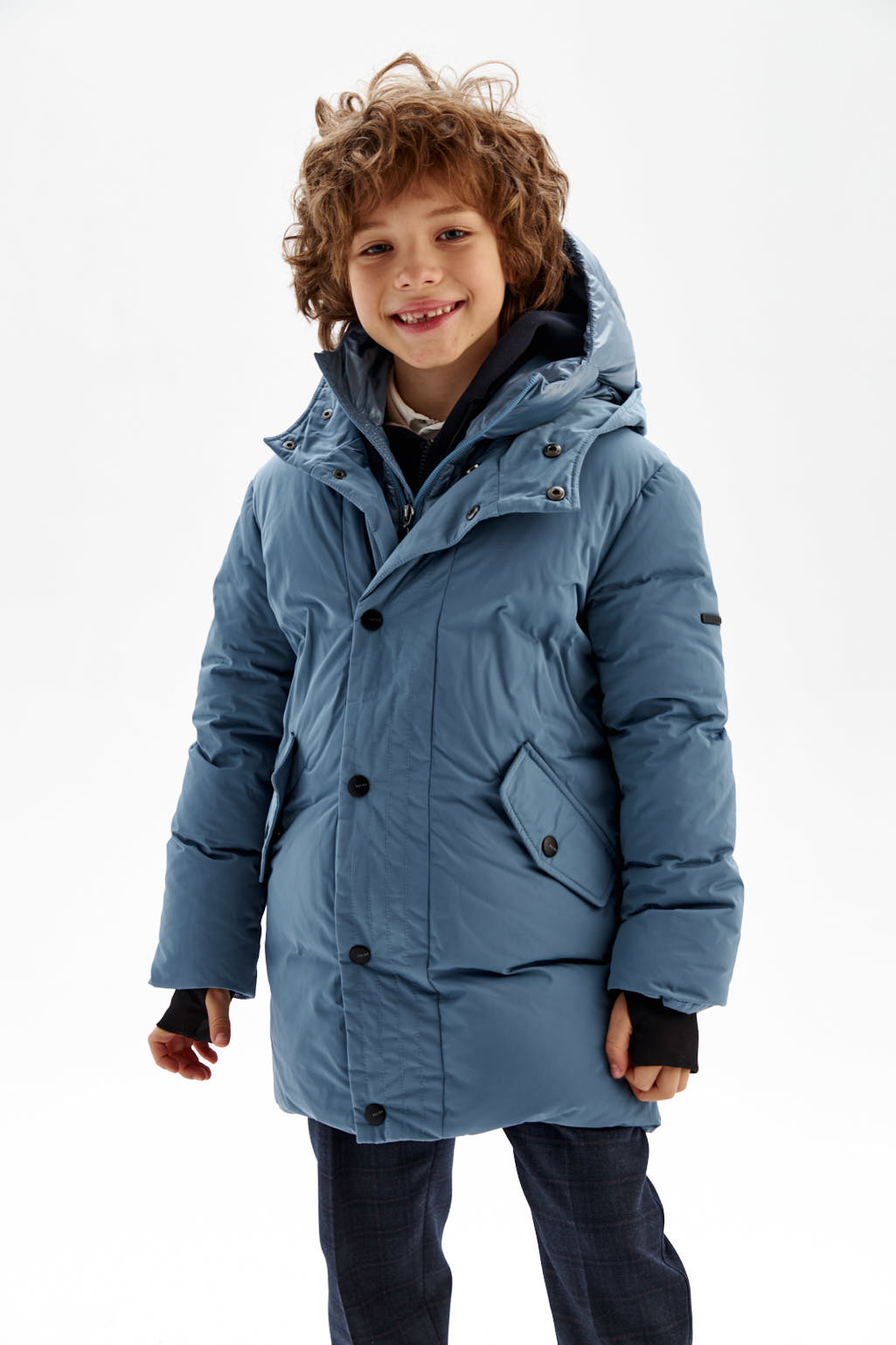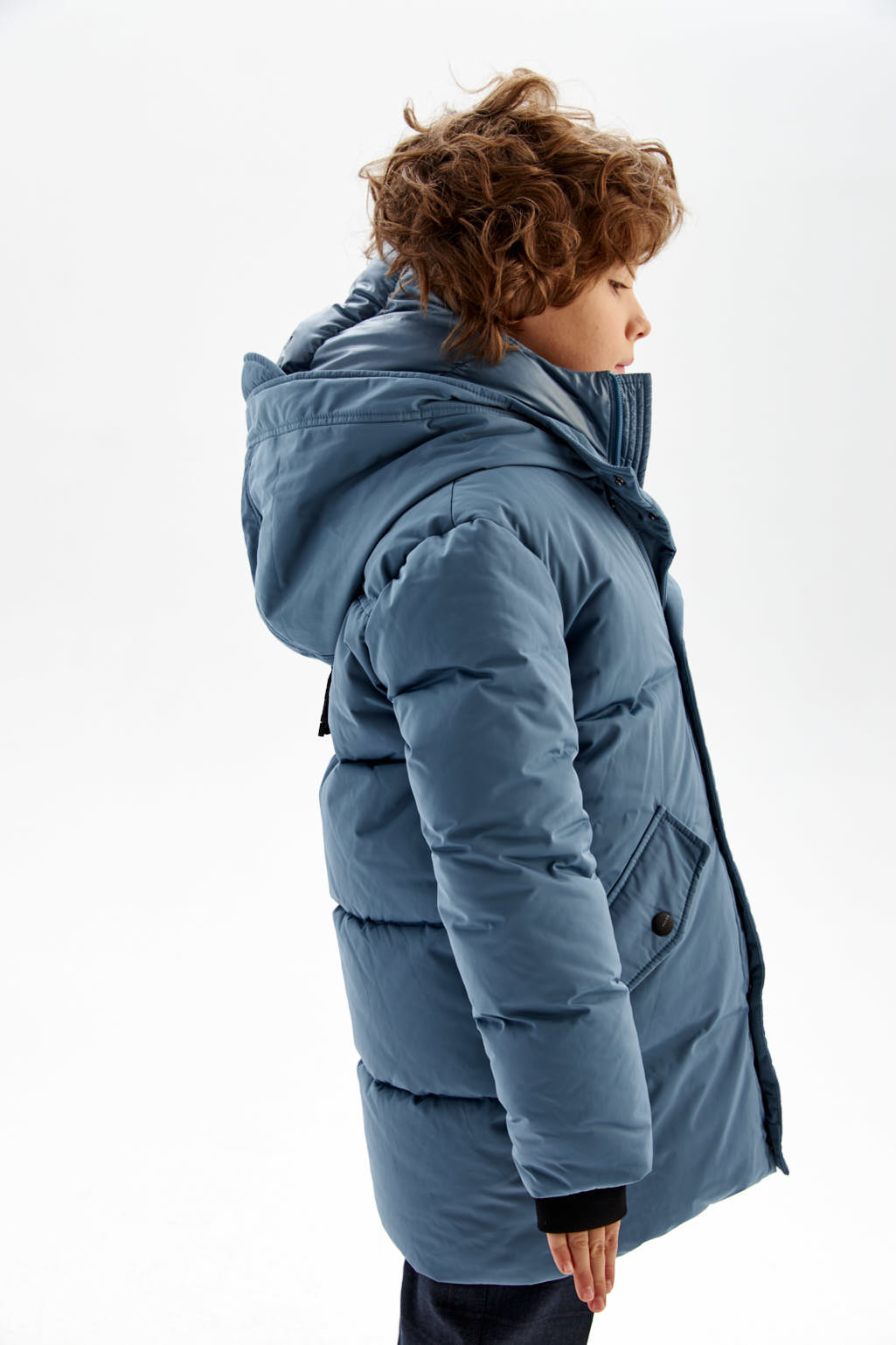 Удлиненная куртка; Температурный режим: до -25° C; Ткань: верх – прочная курточная ткань с водоотталкивающей и водонепроницаемой пропитками. Подкладка – поливискоза; Наполнитель МИКС 250г/м² : 50% – пух/перо 85/15, 50% – био-пух; Два капюшона; Внутренняя жилетка; Утяжка по лицевому вырезу капюшона; Утяжка-регулятор для фиксации удобной глубины капюшона; Низ рукава с внутренней ветрозащитной удлиненной манжетой из трикотажа с отвертием для большого пальца; Две ветрозащитные планки; Внутри куртки - эластичные бретели из брендированной тесьмы; Внутренний карман; Подклад карманов - теплый флис.