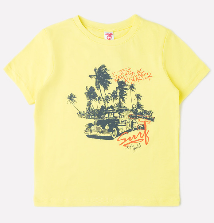 Футболка однотонная из хлопкового трикотажа супрем. Короткие рукава. Спереди принт.