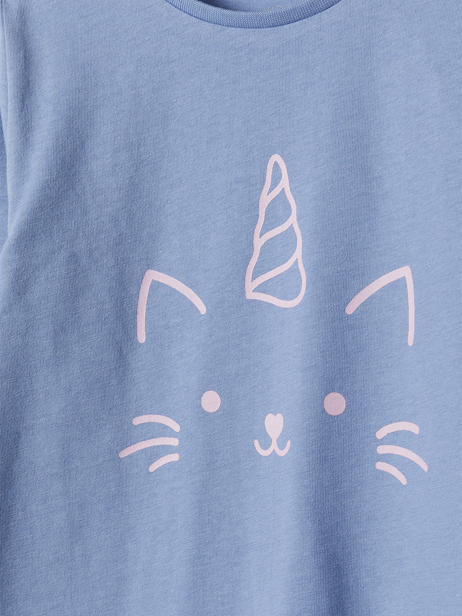 Детский лонгслив синего цвета для девочки - это идеальный выбор для детей, которые любят комфорт и стиль. Он выполнен в спортивном стиле и имеет прямой крой и округлый вырез. Лонгслив с длинными рукавами изготовлен из качественного хлопкового трикотажа. На груди украшен принтом в виде кошки. Такой лонгслив можно носить как на прогулке, так и дома. Он отлично смотрится в сочетании с джинсами, брюками или спортивными штанами. Этот хлопковый лонгслив чрезвычайно нежный и приятный на ощупь, не раздражает кожу и обеспечивает максимальный комфорт каждый день.