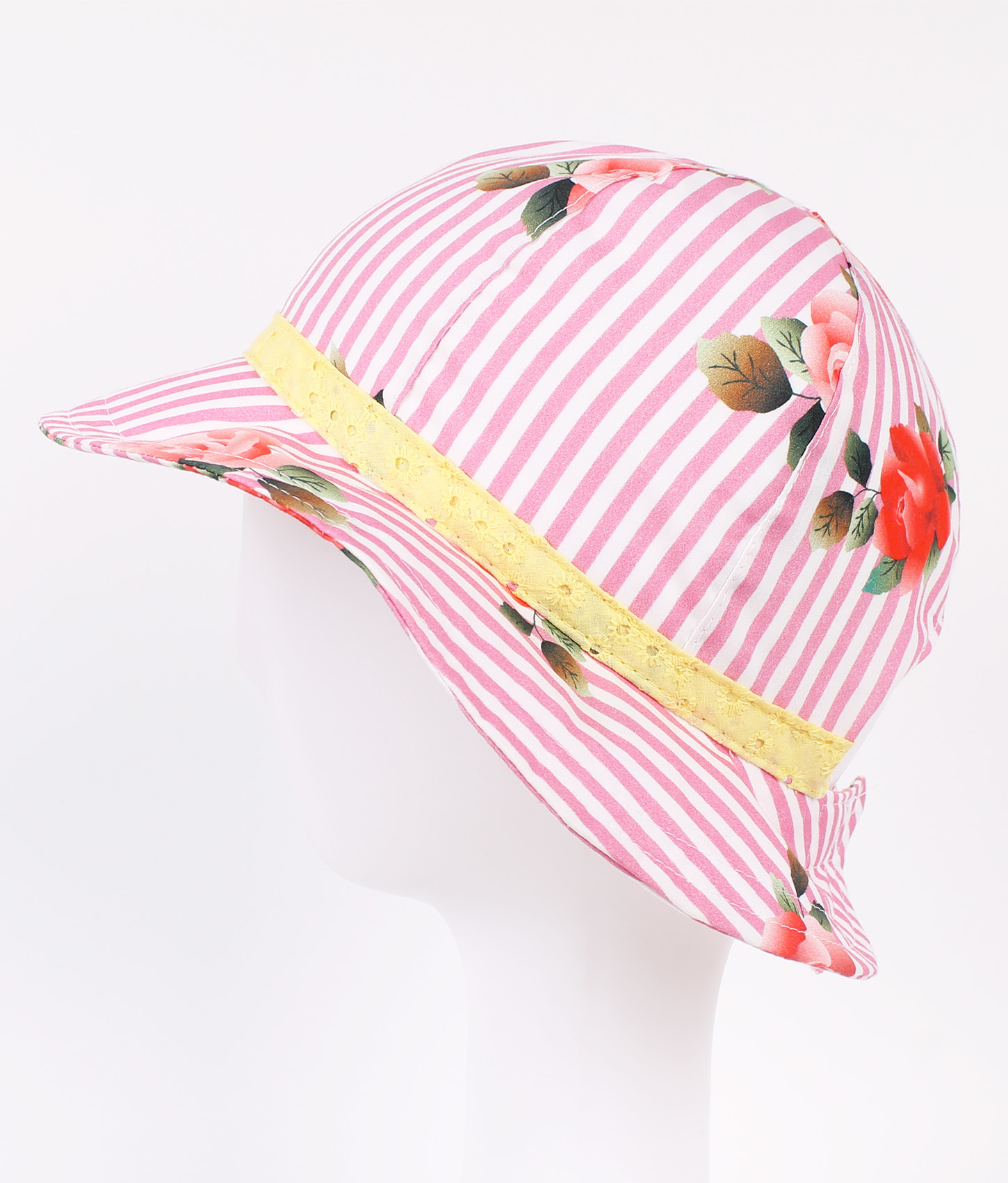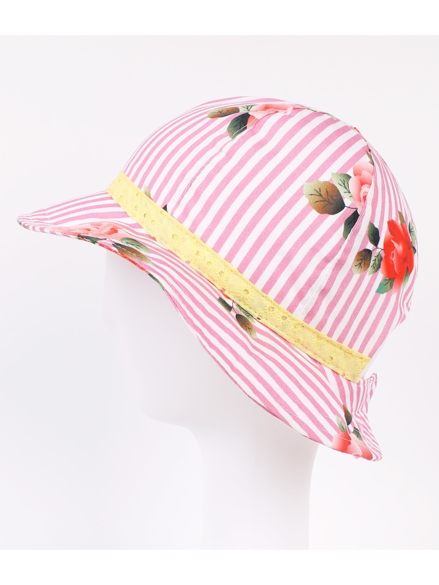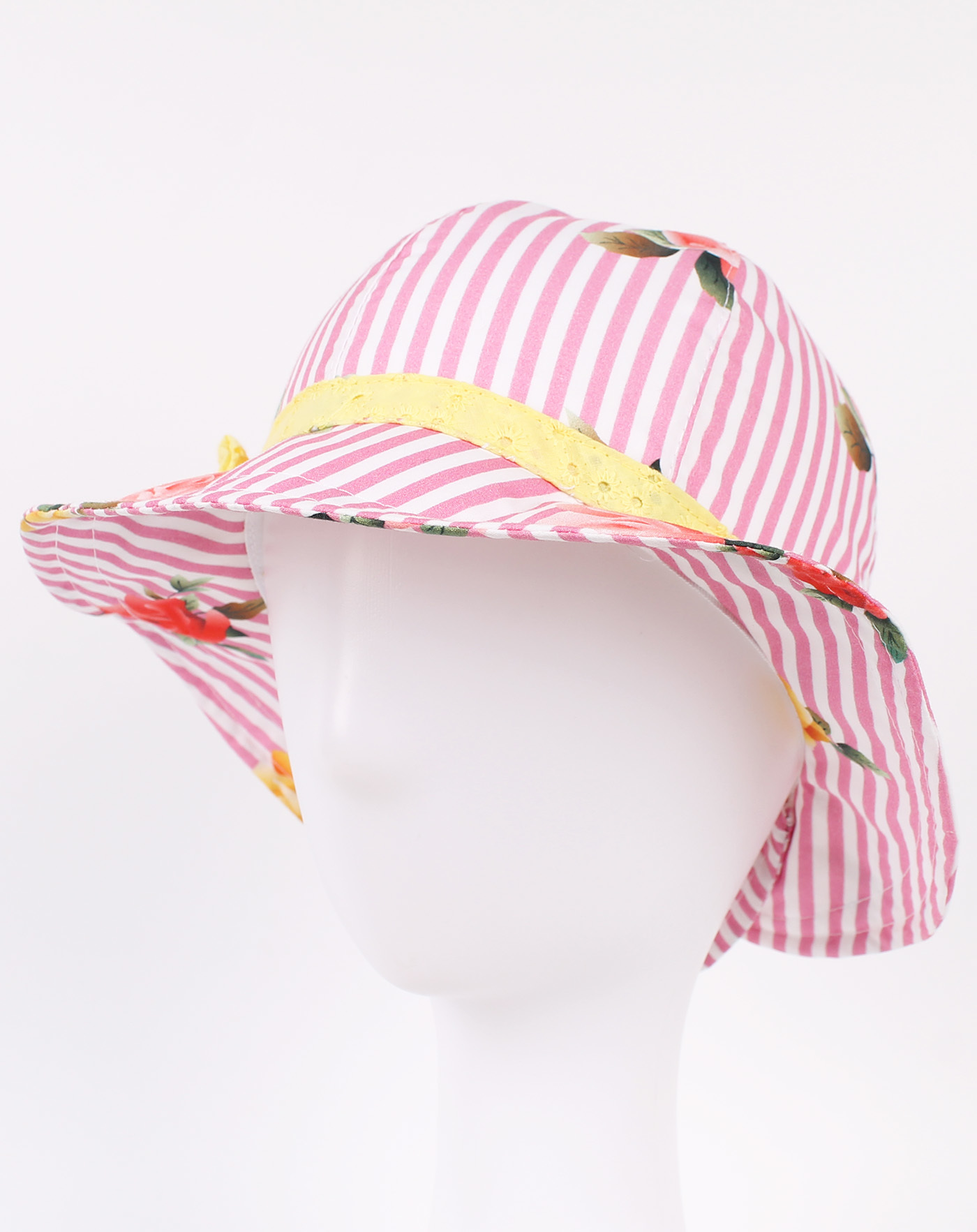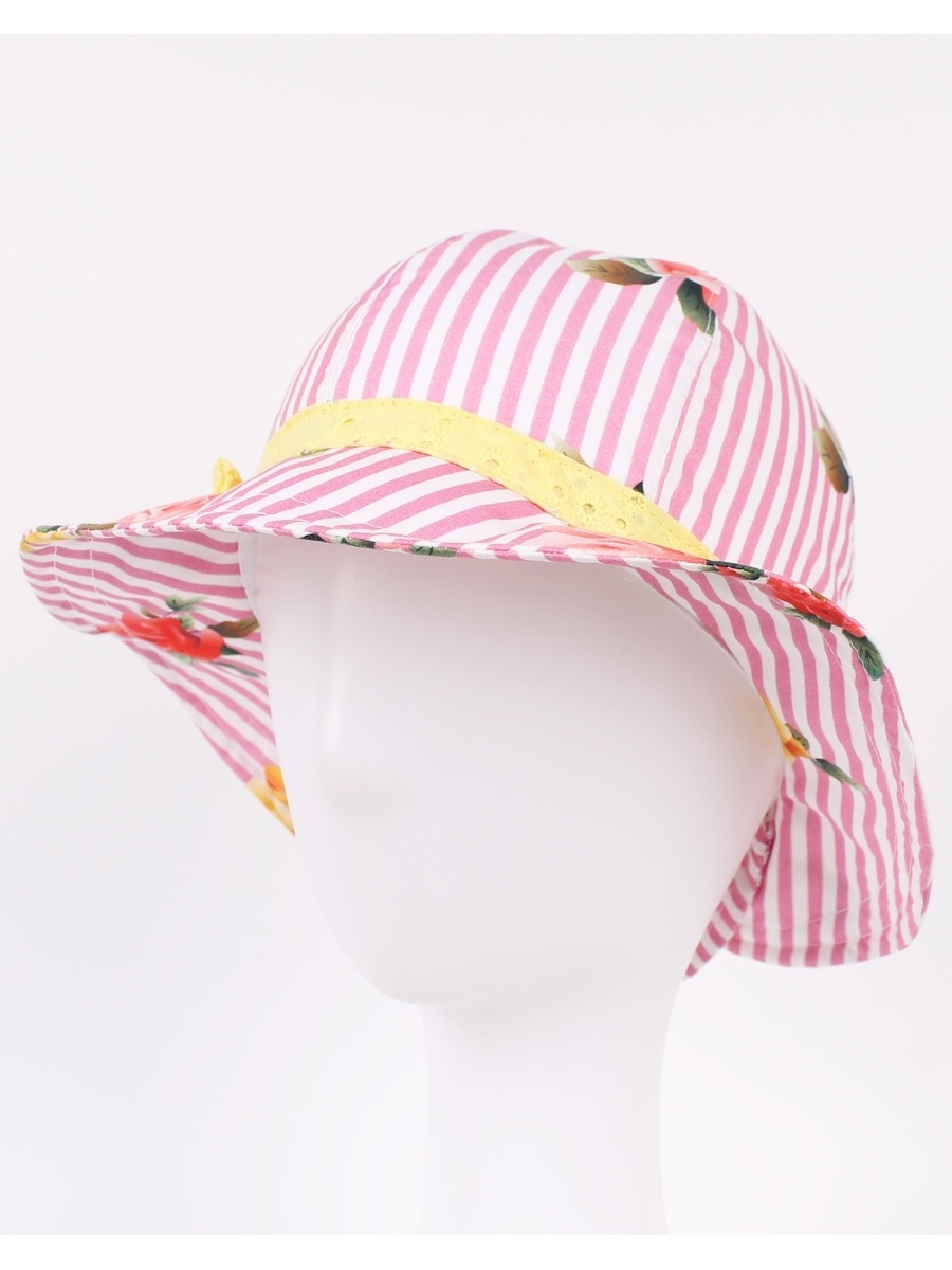 Шляпа-панама в полоску с цветочками Maximo из 100% хлопка. Удобная застежка сзади на липучке.