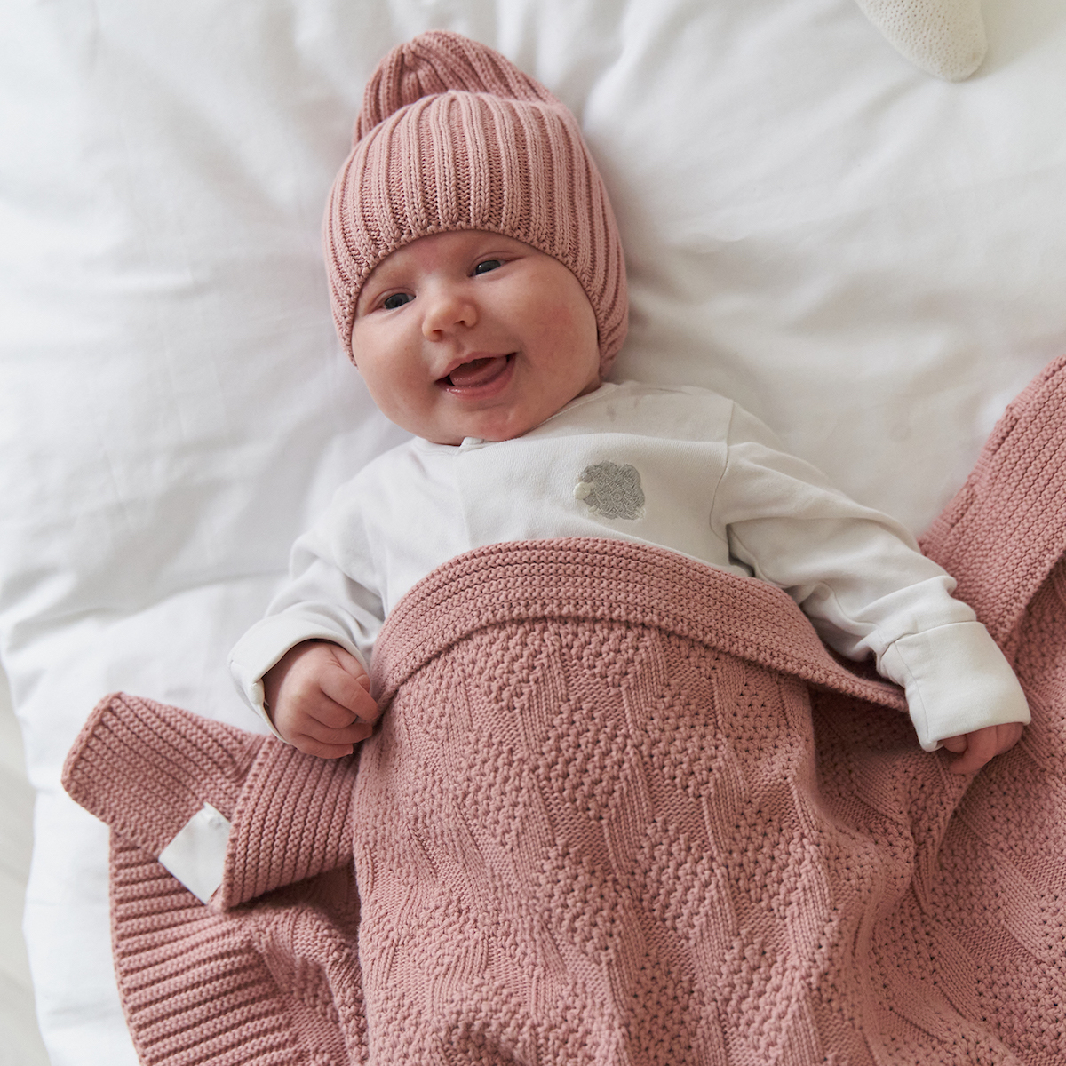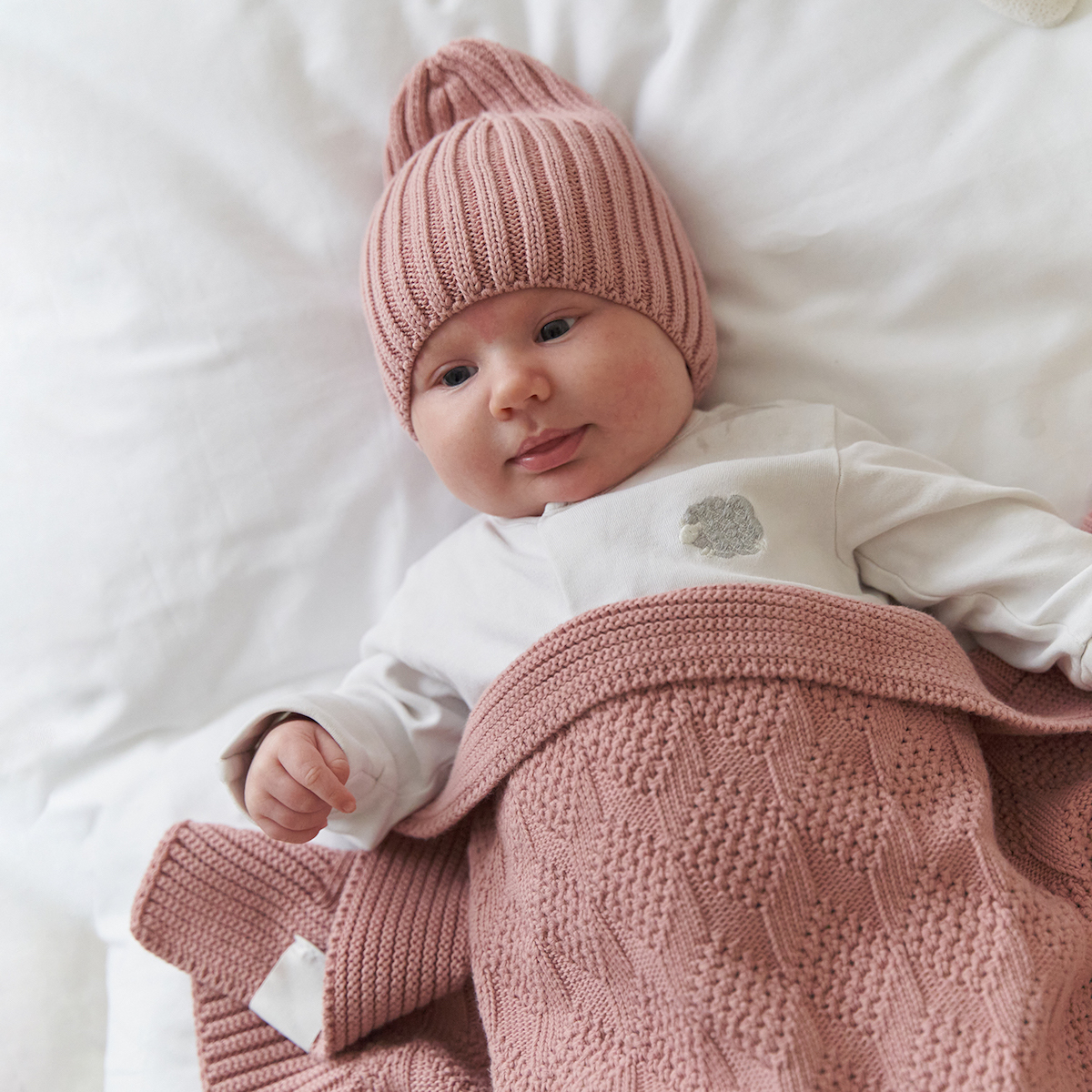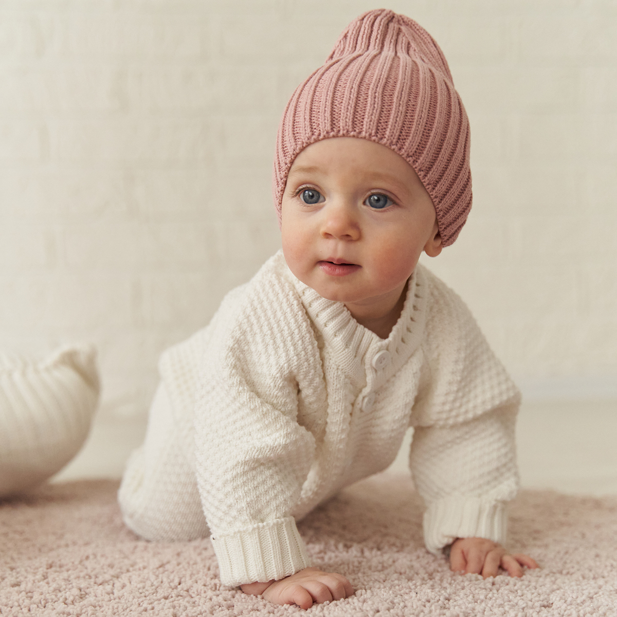 Пепельно-розовая вязаная шапка