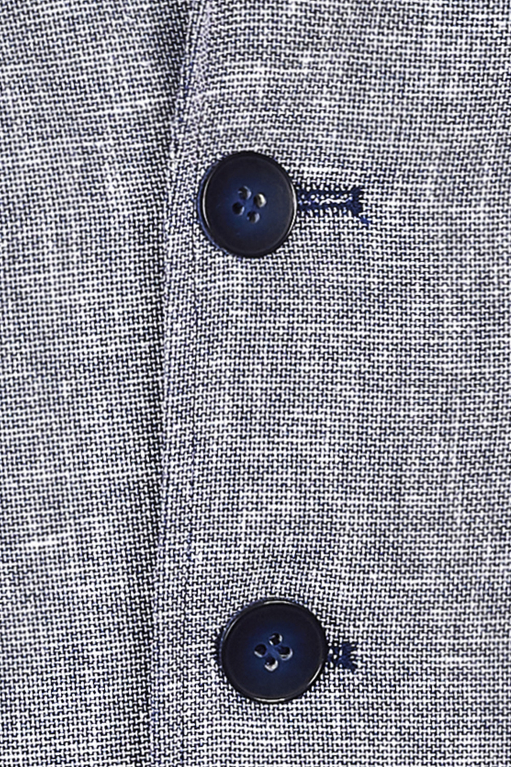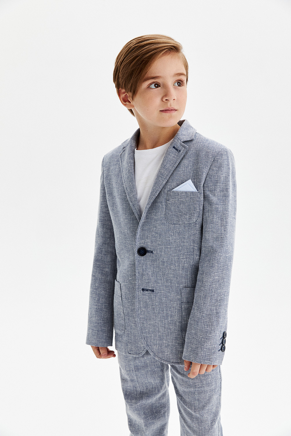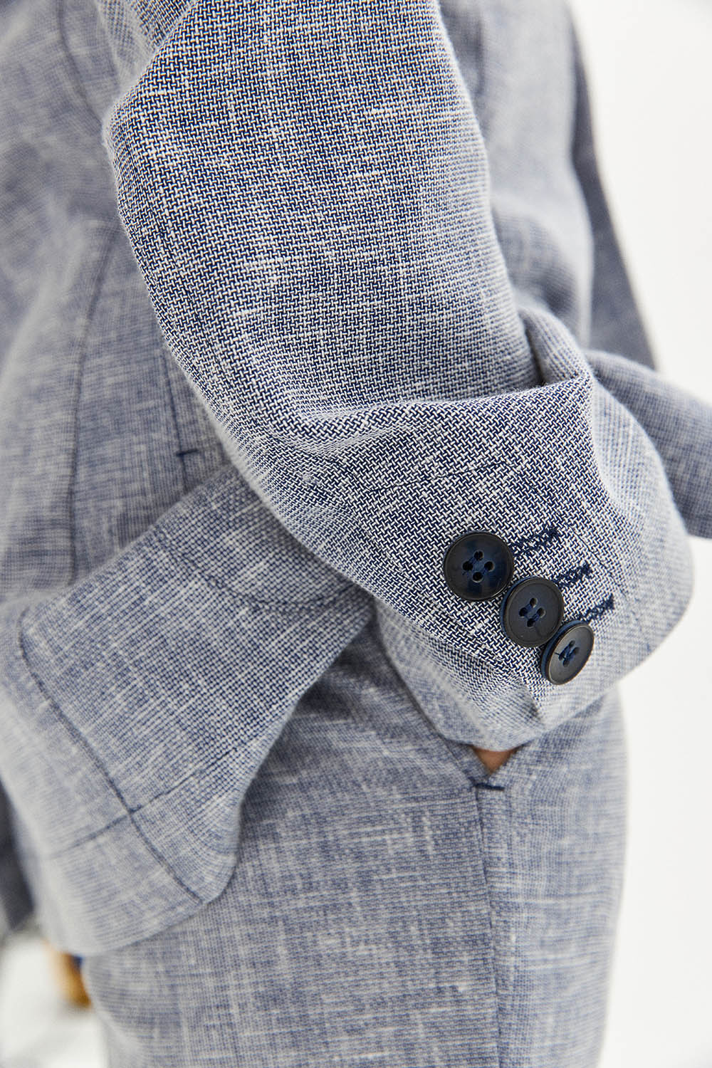 Приталенный силуэт SLIM; Легкий пиджак выполнен из костюмной ткани, которая хорошо держит форму. Лен и вискоза в составе обеспечивают воздухопроницаемость и комфорт к телу, а благодаря полиэстеру пиджак износостойкий и меньше мнется. Эластан отвечает за идеальную посадку. По спине предусмотрена воздухопроницаемая подкладка с высоким содержанием натуральных волокон; Карман с имитацией платка на груди, удобные накладные карманы.