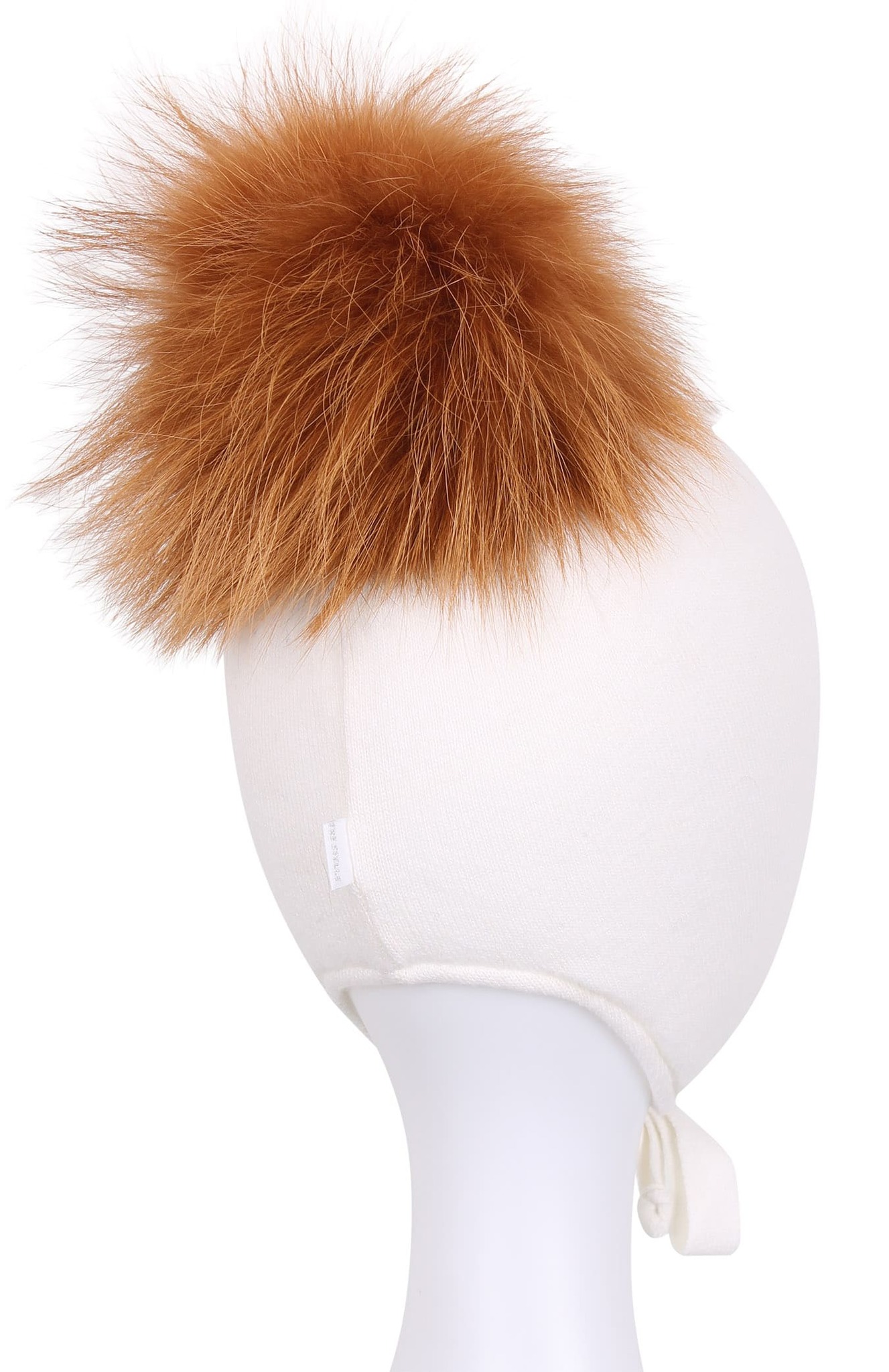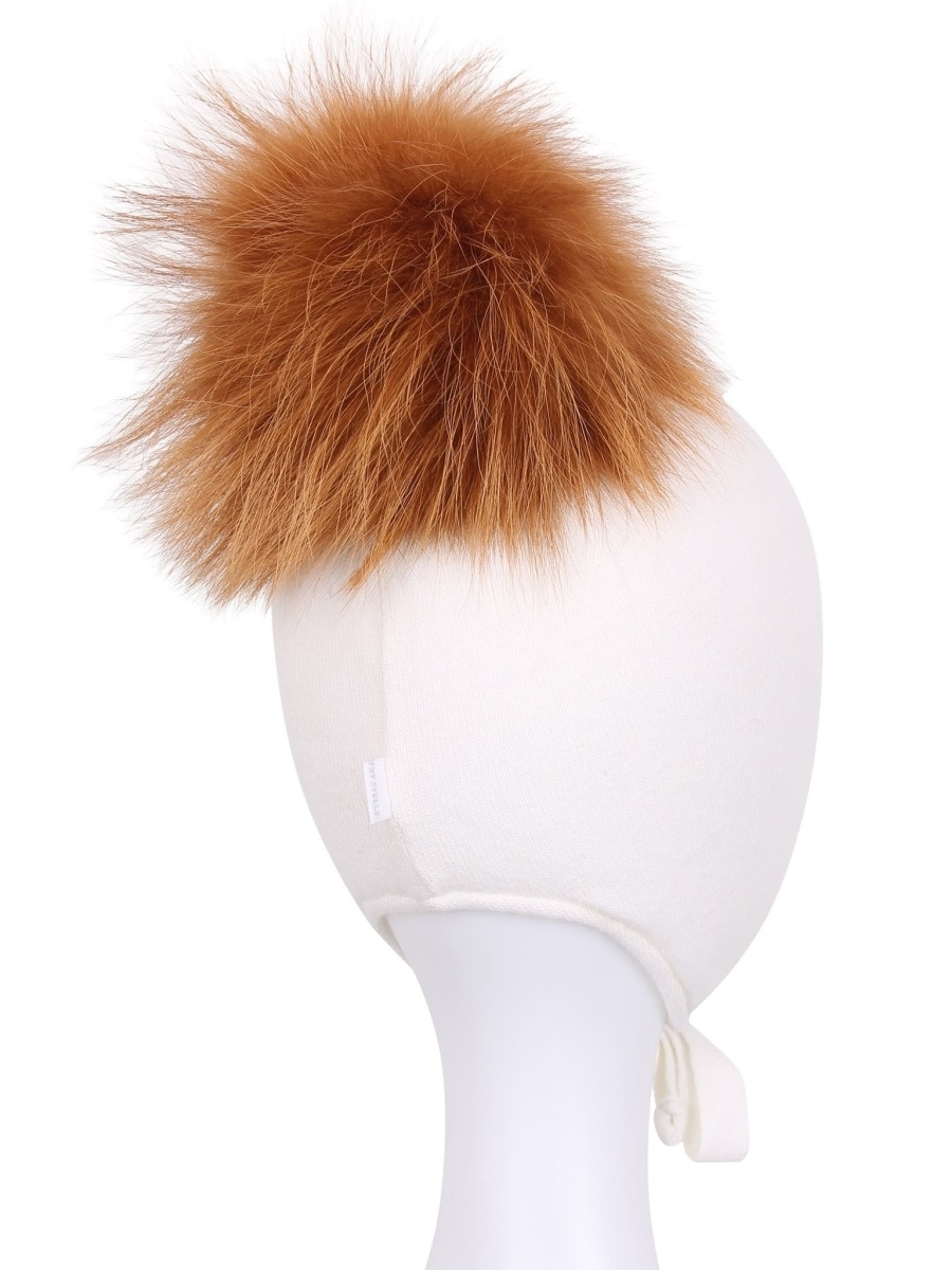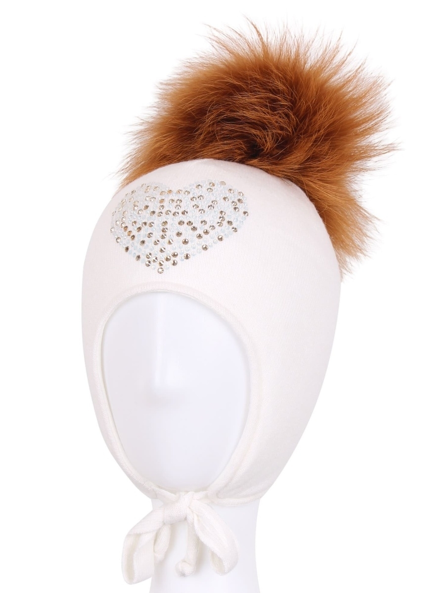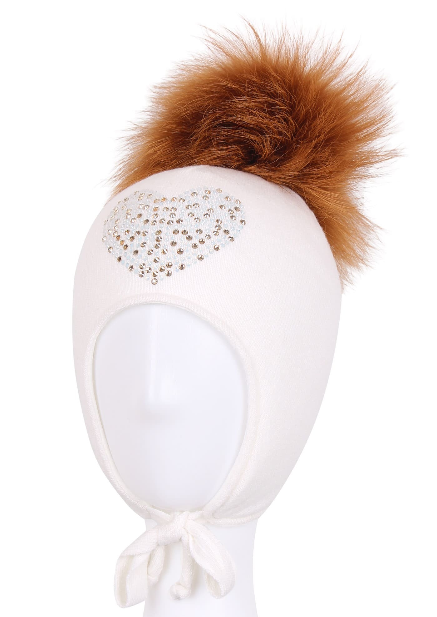Зимняя утепленная шапка Trestelle для девочки. Модель декорирована меховым помпоном и стразами. Трикотажная подкладка.