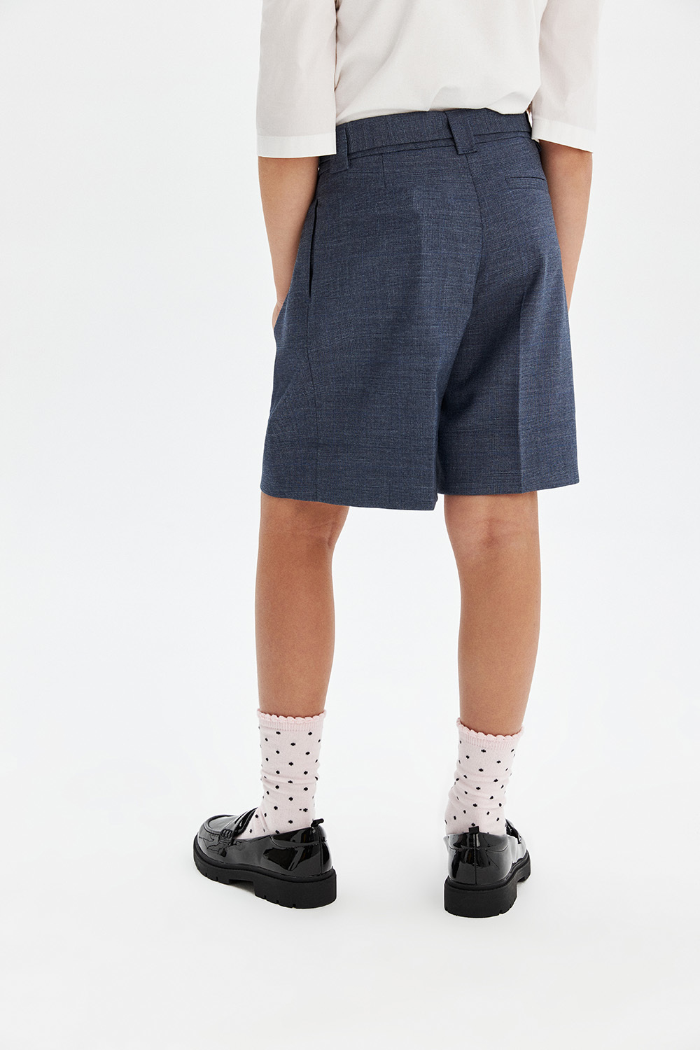 Шорты свободного силуэта длиной чуть выше колена; Модель выполнена из костюмной ткани в элегантную, сдержанную клетку. Вискоза в составе обеспечивает воздухопроницаемость и комфорт к телу, а благодаря полиэстеру шорты износостойкие и меньше мнутся. Эластан отвечает за идеальную посадку; Съемный пояс фиксируется на полукольца. По спине эластичная тесьма - для полного прилегания по фигуре; Удобные боковые карманы, имитация карманов на задних половинках шорт; Стрелки заутюжены; Широкий подгиб по низу подчеркнут отстрочкой; Застежка на молнию и пуговицу.