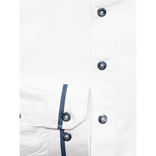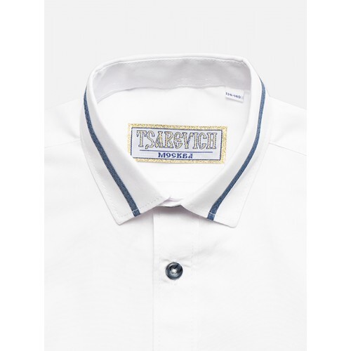 Состав: 80% хлопок 20% полиэстер Модель прямого кроя, комбинированная контрастной полоской по вороту и манжетам. Цвет белый. Длинный рукав. Товар сертифицирован.