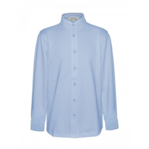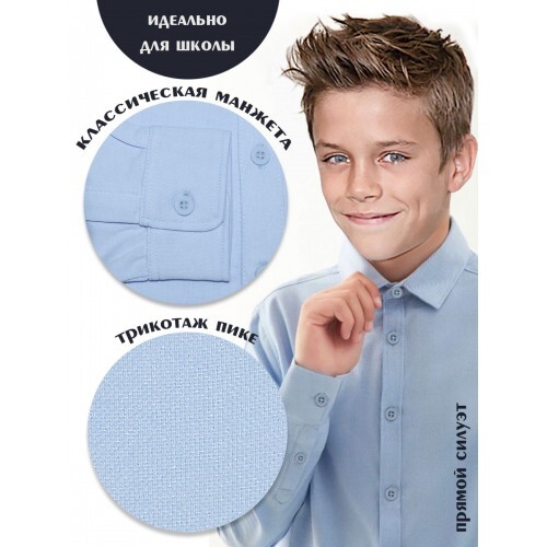По-размерно Трикотажная модель прямого кроя с классическим манжетом, ткань пике. Цвет голубой. Длинный рукав. Товар сертифицирован.