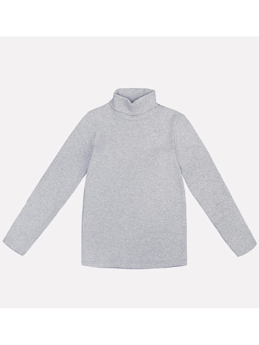 Джемпер детский из однотонного или меланжевого кашкорсе, длинные втачные рукава, воротник высокая стойка с отворотом. В размерах 52/92 и 56/98 застёжка на кнопки по плечу.